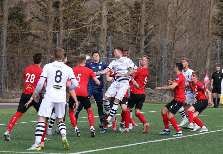 Kórdrengir eru með mikla orku eftir markið sitt. þeir vinna hornspyrnu hægra megin á vellinum.