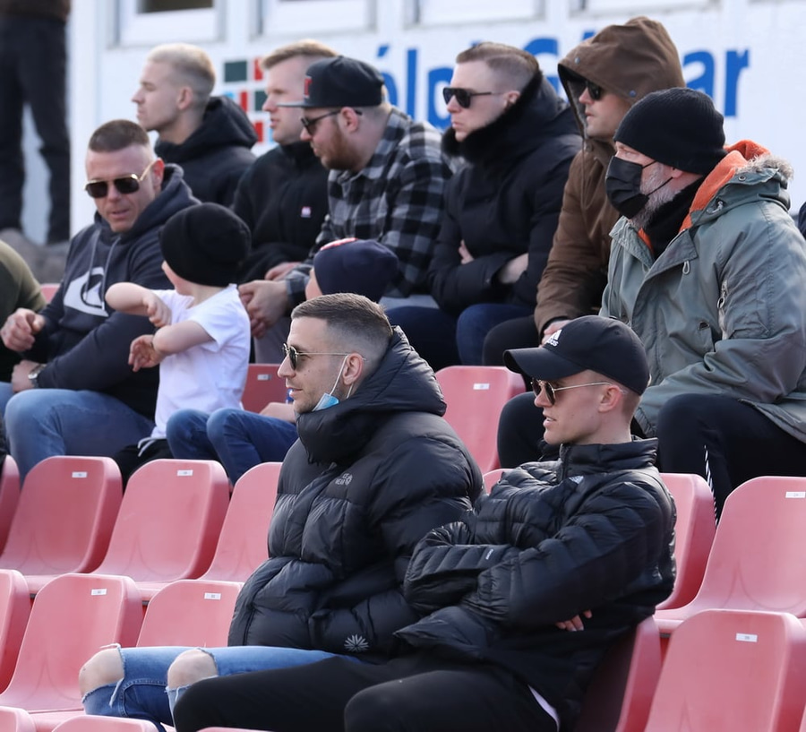 Gaman að sjá Birki Má landsliðsmann og leikmann Vals hér í stúkunni að styðja bróður sinn, Aron Elí sem spilar fyrir Aftureldingu.