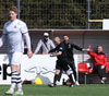 Aukaspyrna fyrir Afturelding fyrir utan teig. Tveir leikmenn frá sitthvoru liði liggja í teig og halda báði í höfðinu sínu.