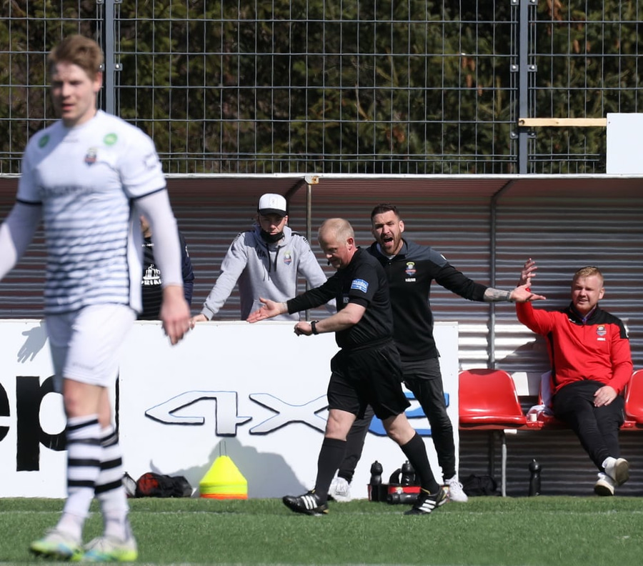 Missti af fyrsta gula spjaldinu, en Davíð Smári, þjálfari Kórdrengja, var að fá sitt annað gula spjald og er hann farinn upp í stúku með rautt spjald.