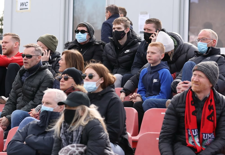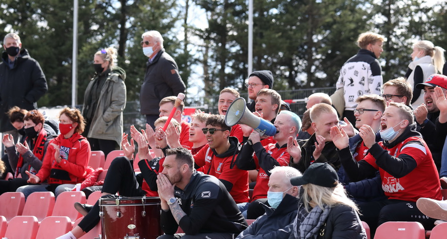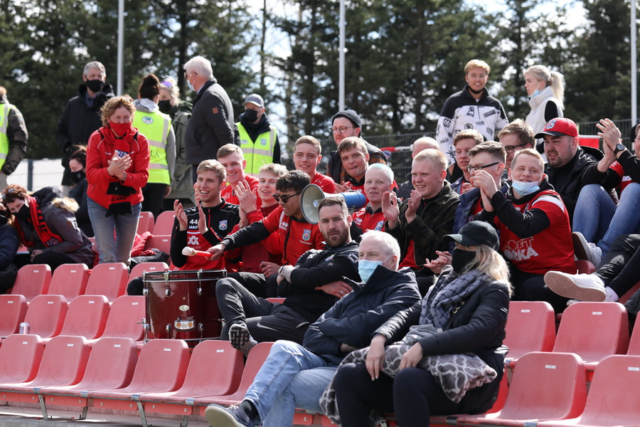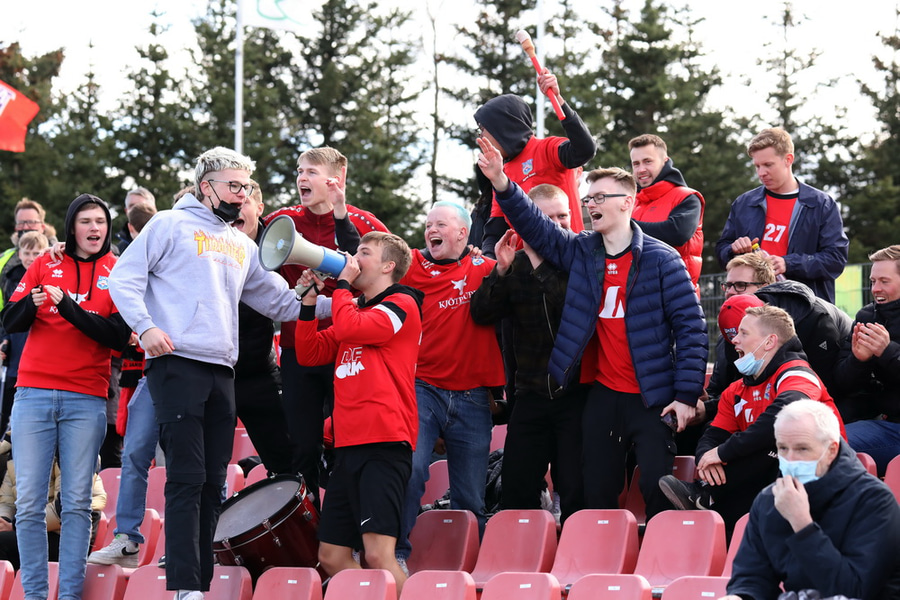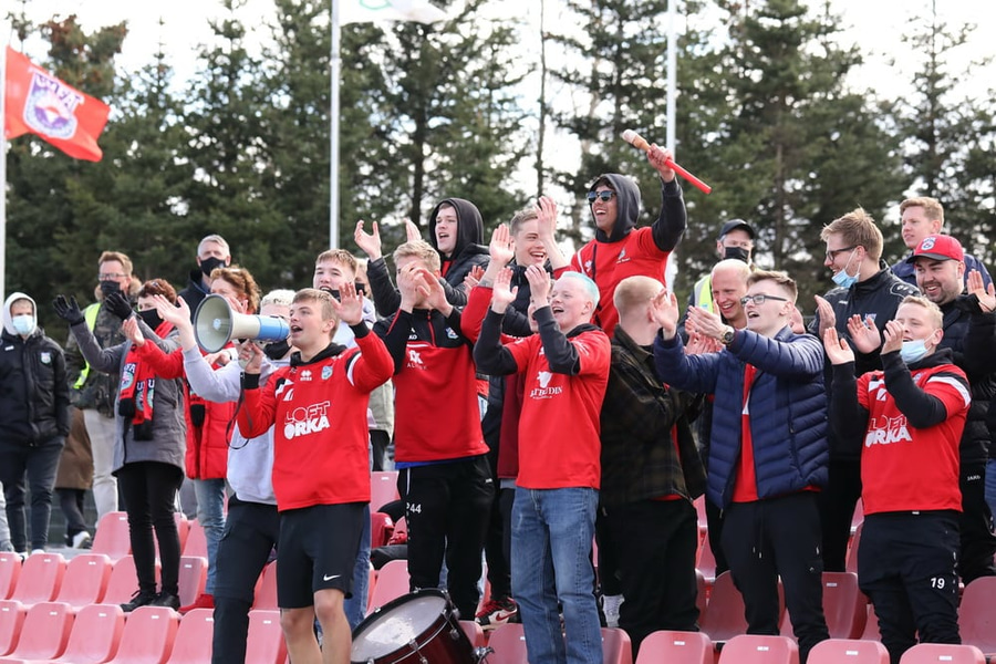 Mikil læti í stuðningsmönnum Aftureldingar. Alvöru passion í gangi hér, mjög gaman að heyra!
