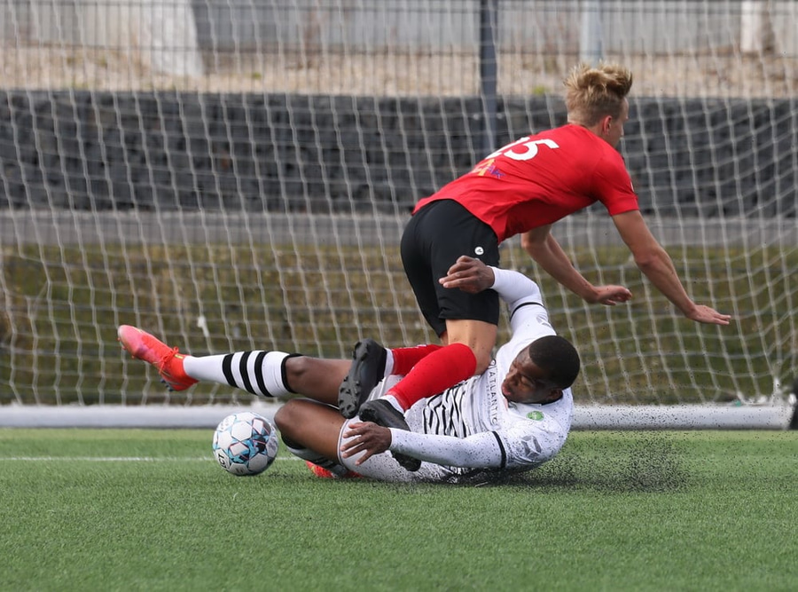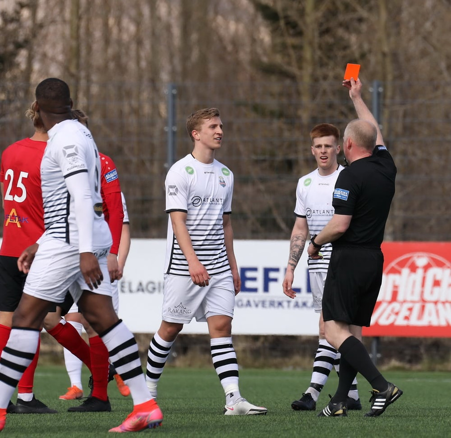 Ný búinn að fá gult spjald, fær svo rautt minna en mínútu seinna.