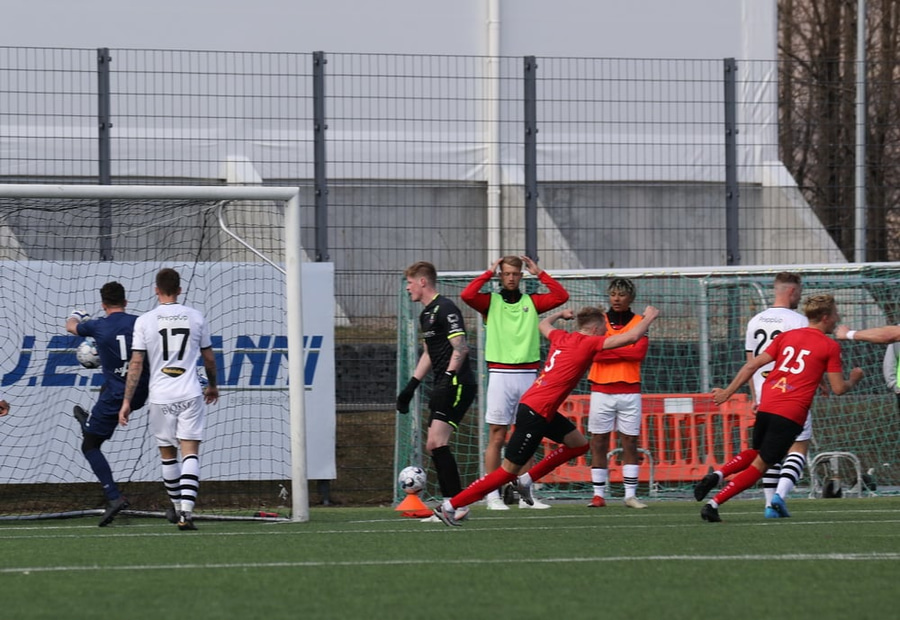 Kórdrengir eru að pressa mikið á vörnina hjá Afturelding. Kórdrengir hafa verið nálægt með að skora nokkru sinnum, en ennþá ekkert mark komið.