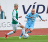 Oliver með fyrirgjöfina og Kiddi reynir að stýra boltanum á markð en nær því ekki. Gestirnir fá aukaspyrnu.