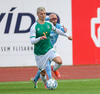 Sölvi Snær við það að sleppa í gegn en gerir ekki nægilega vel á sprettinum. Var með Árna kláran vinstra megin en missir boltann.
