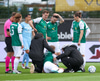 Mabella með fyrirgjöf inn á teiginn, Damir tæklar fyrir en gestirnir vilja meina að boltinn hafi farið í höndina á Damir. Gestirnir ósáttir að leikurinn var látinn halda áfram og ekkert dæmt.
