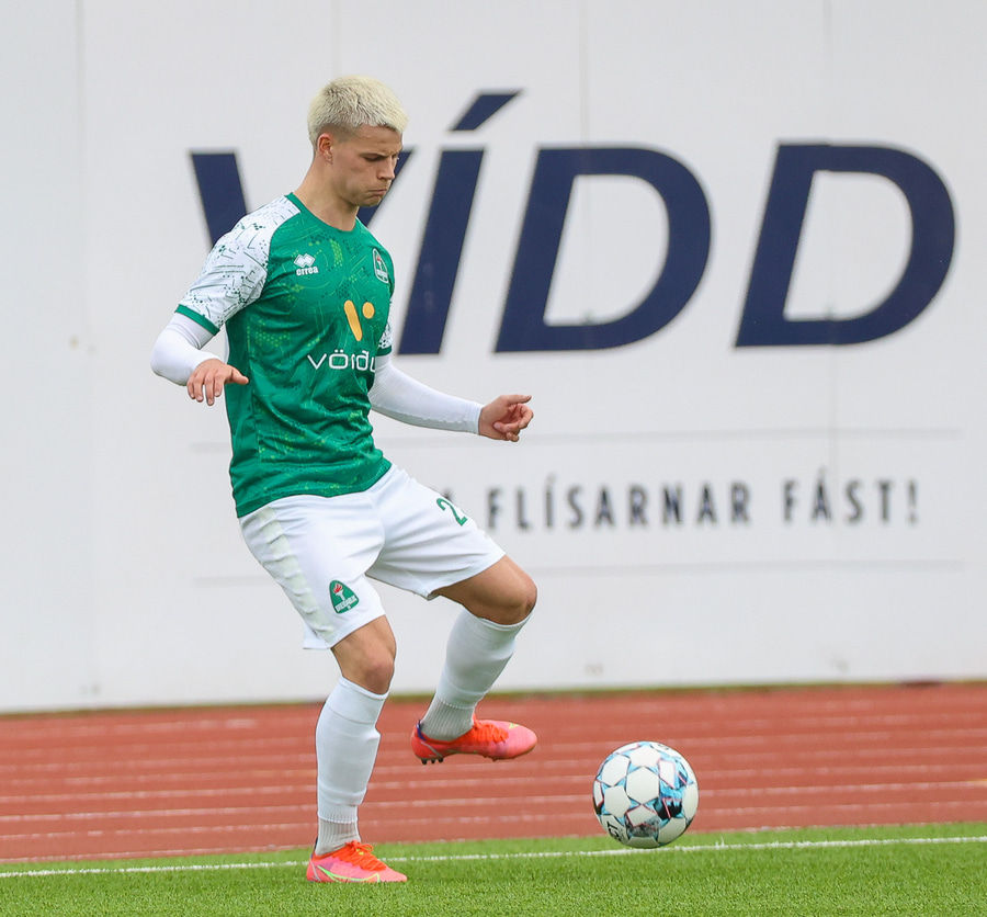 Fínt spil úti vinstra megin. Gísli kemur svo með fyrirgjöf inn á teiginn sem Viktor Karl reynir að ná til en brýtur af sér.