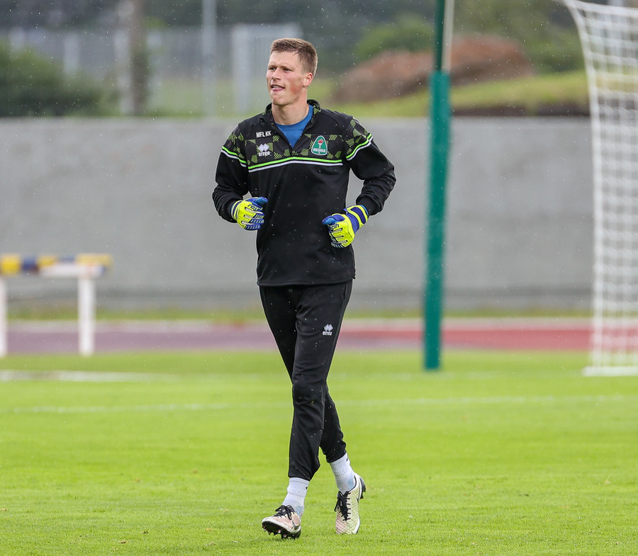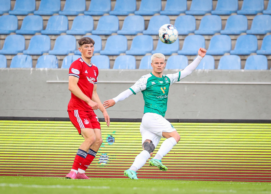 Aberdeen taka aukaspyrnu snöggt en Viktor Örn vel á verði og bjargar því að Aberdeen komist í dauðafæri.