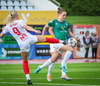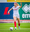 Blikar sækja þá hratt, Hildur með boltann úti hægra megin og reynir að koma boltanum yfir á Karítas en sendingin ratar ekki yfir.