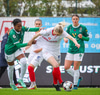 Nú fá Valskonur sína fyrstu hornspyrnu.