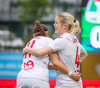 Taylor með góðan bolta á fjær og Alexandra nálægt því að koma kollinum í boltann en missir af honum.