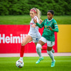 Hildur setur boltann út í teiginn á Áslaugu Mundu sem tekur snertingu og á gott skot með hægri sem Sandra ver glæsilega!