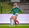 Áslaug Munda fær boltann út til vinstri og kemur með fastann bolta fyrir markið en Taylor missir af boltanum.