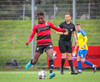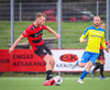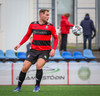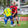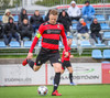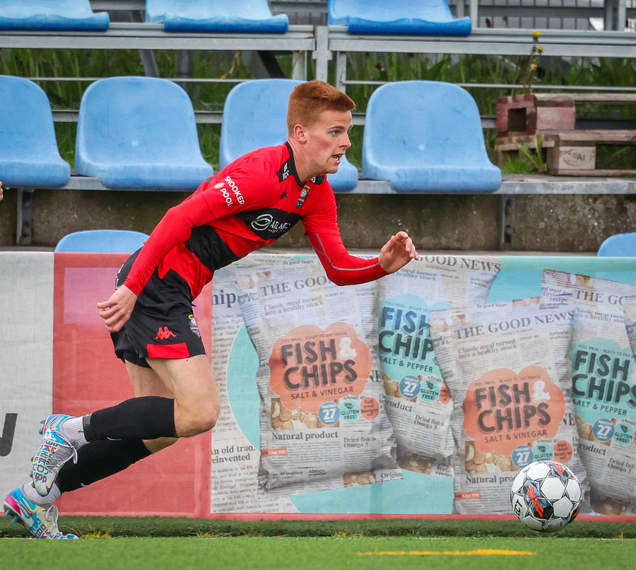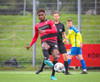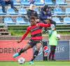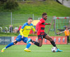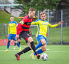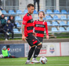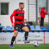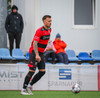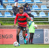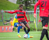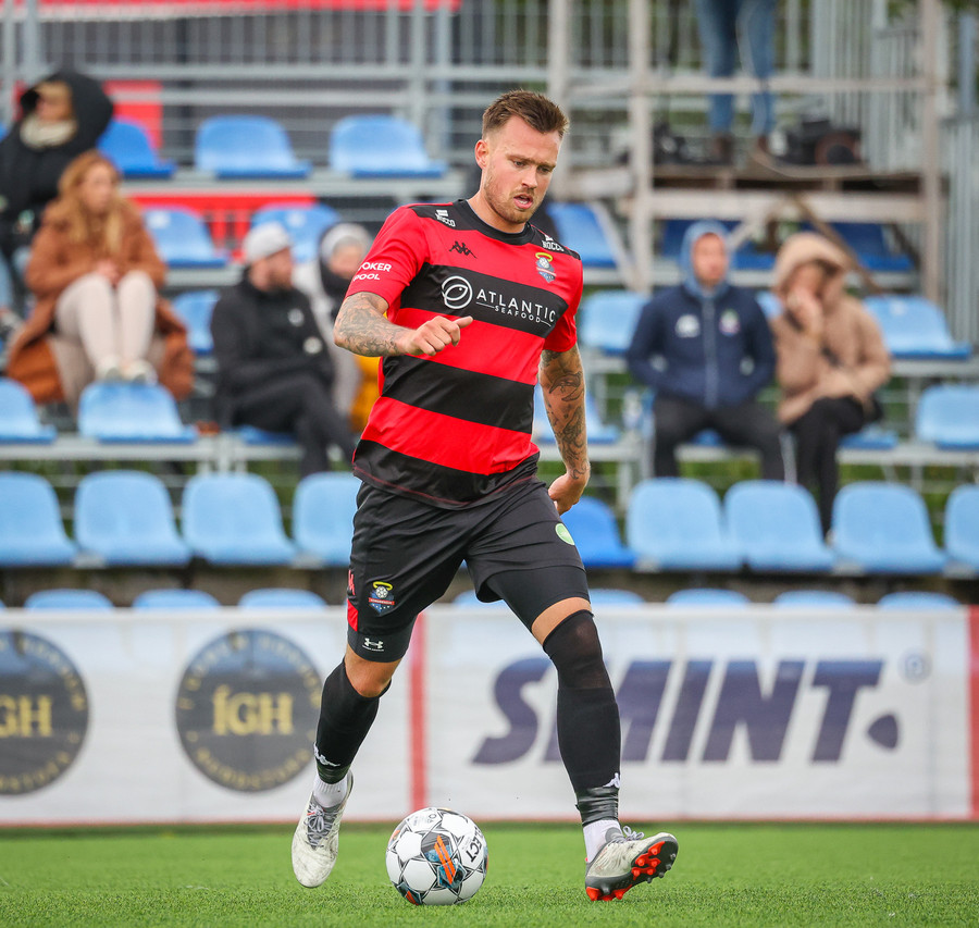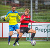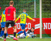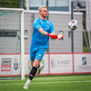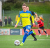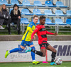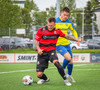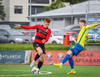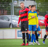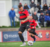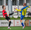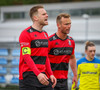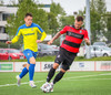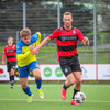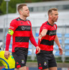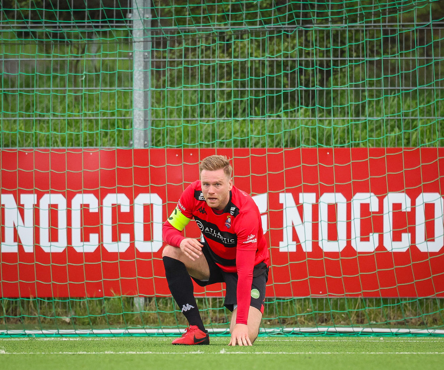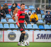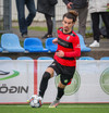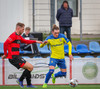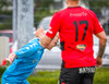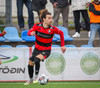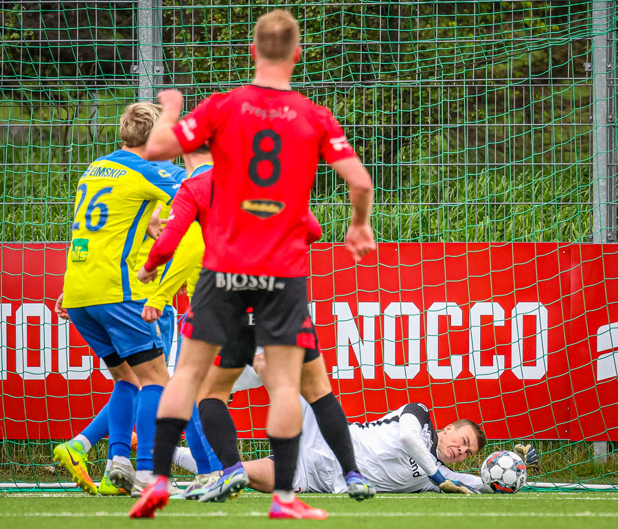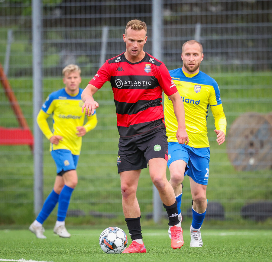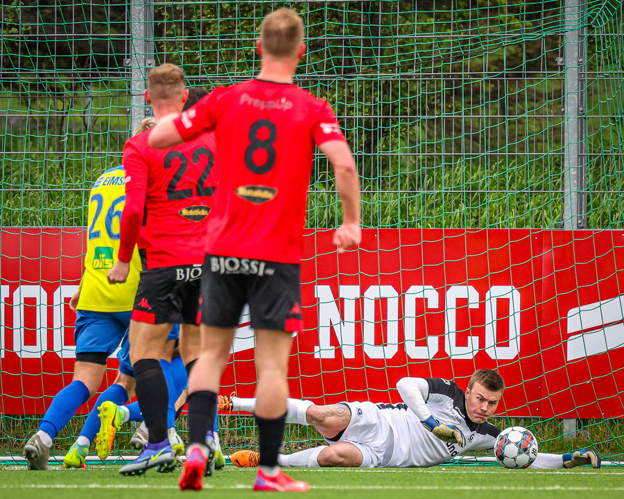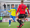 Kairo nær að vippa boltanum yfir Daða Freyr sem fer langt frá sínu marki, en boltinn fer framhjá markinu.