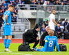 Birkir Bjarna liggur eftir eitthvað klafs en stendur fljótt á fætur.