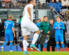 Sú tilraun frá Herði sem smellur í slánni og yfir markið. Hefði verið svo sætt að sjá þennan liggja.
