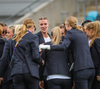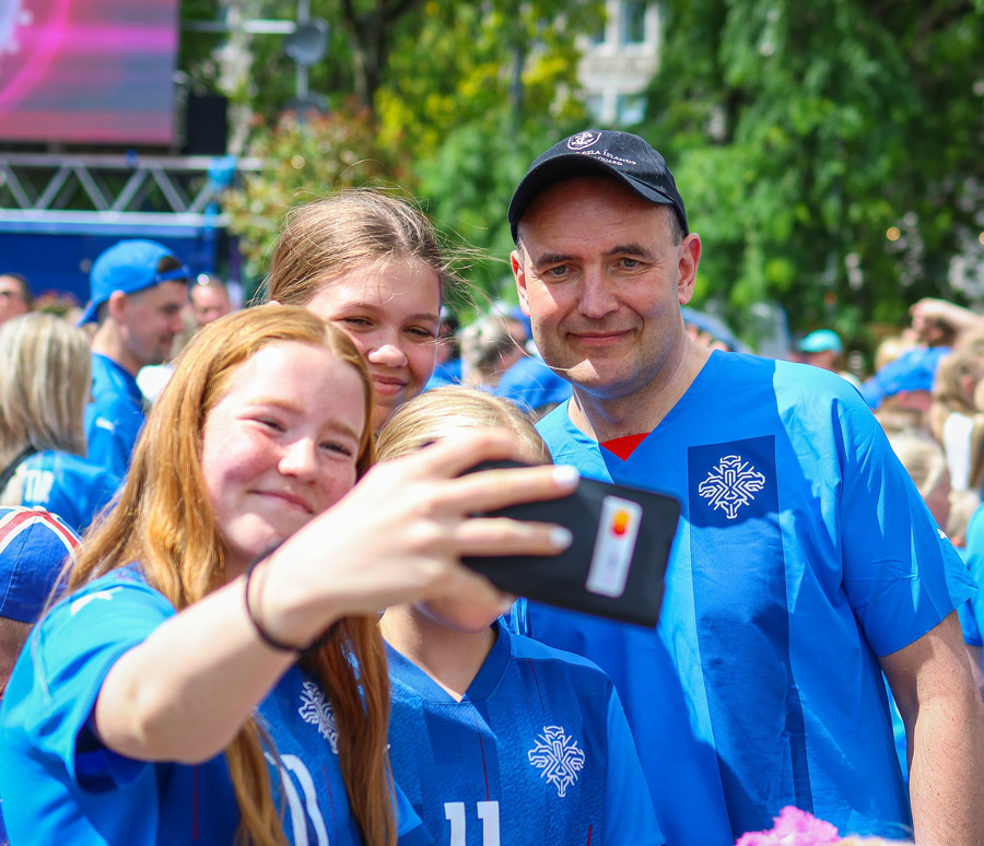 ,,Guðni var bara að peppa okkur. Hann sagði okkur að hann væri stoltur af okkur og að allt fólkið heima á Íslandi væri að styðja okkur. Það er ótrúlega gaman að heyra það. Hann gaf okkur hvatningarorð. Þau sögðu við okkur að við værum góðar fyrirmyndir og við tökum því hlutverki alvarlega. Það er frábært að fá stuðning frá þeim og gaman að heyra að við séum með mikinn stuðning heima þó við vitum það líka vel," sagði Dagný Brynjarsdóttir í gær.
