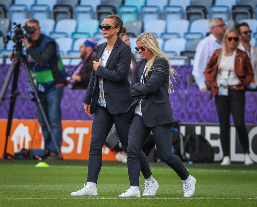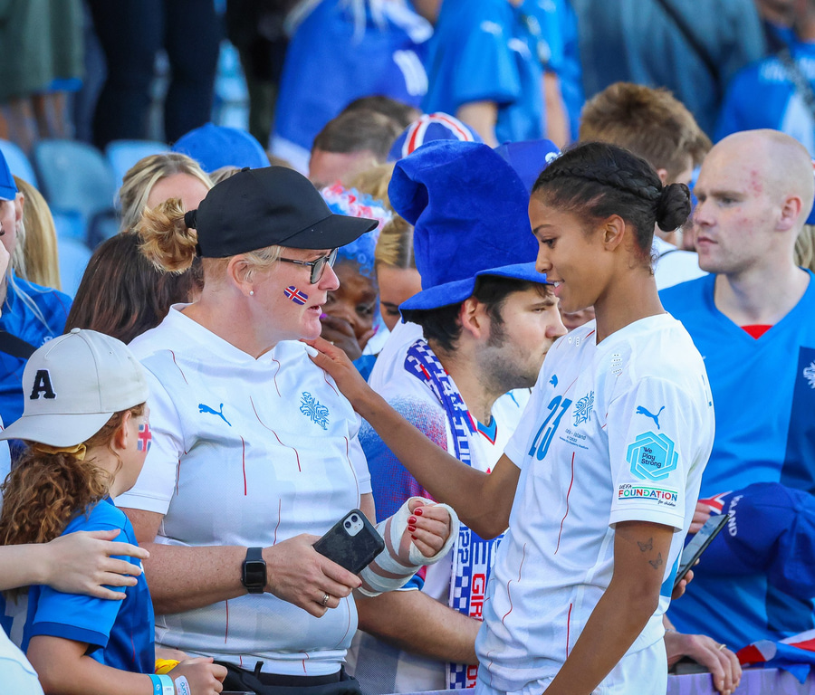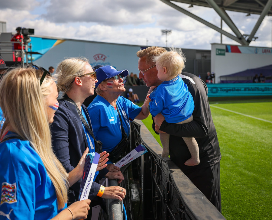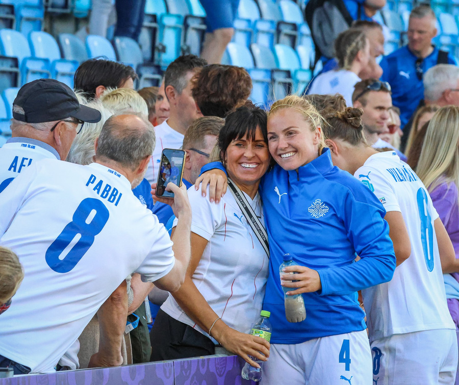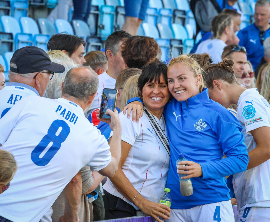 ,,Við hittum fjölskyldur okkar í gær og það er ótrúlega mikilvægt. Við þurfum að jafna okkur líkamlega og ekki síður andlega. Við fórum út tveimur vikum fyrir fyrsta leik og erum búnar að vera lengi í burtu. Það var gott að hitta fjölskylduna þó það var ekki ótrúlega lengi. Nokkrir klukkutímar eru betri en enginn," sagði Dagný Brynjarsdóttir á fréttamannafundinum í gær.