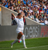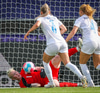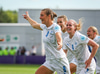 Hallbera með aukaspyrnuna inná teiginn, Guðrún vinnur fyrsta bolta, boltinn hrekkur svo af Söru fyrir fæturnar á Alexöndru sem skýtur framhjá í dauðafæri!