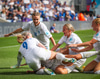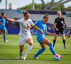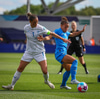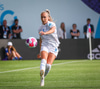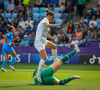 Boltinn endar eftir smá barning hjá Söru Björk inn á teignum, hún lætur vaða en skotið fer yfir nærstöngina.