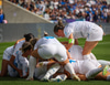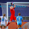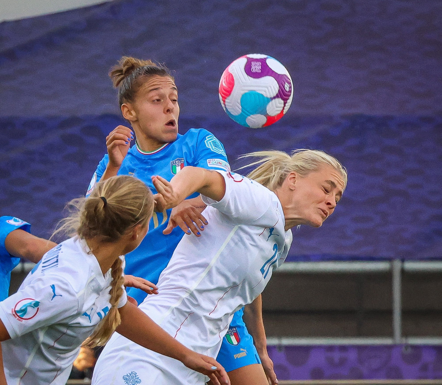 Allskonar vandræði hjá Ítölunum inná teignum, Guðrún á skalla og svo kemur Giuliani út í teiginn og þarf að slá boltann í burtu.