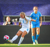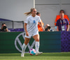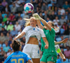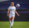 Fyrirgjöf inn á teiginn sem mér sýnist Karólína skalla í burtu.