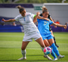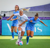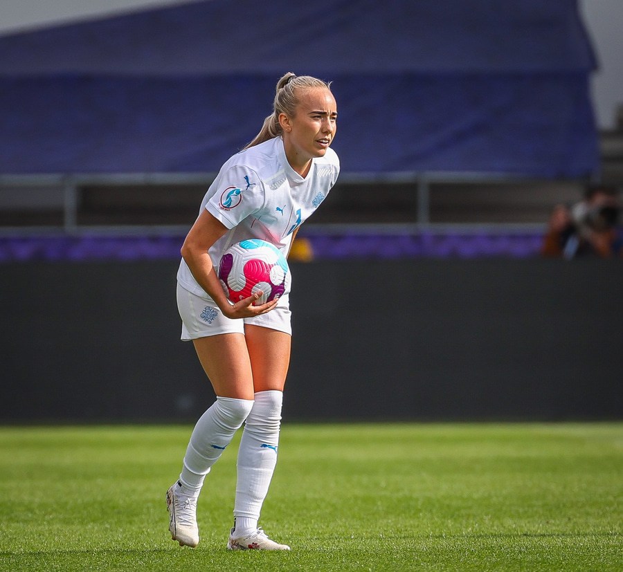 Sveindís fær boltann inná teignum, nær að koma boltanum á Karólínu en skotið frá Karó fer framhjá!