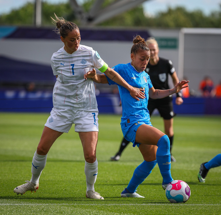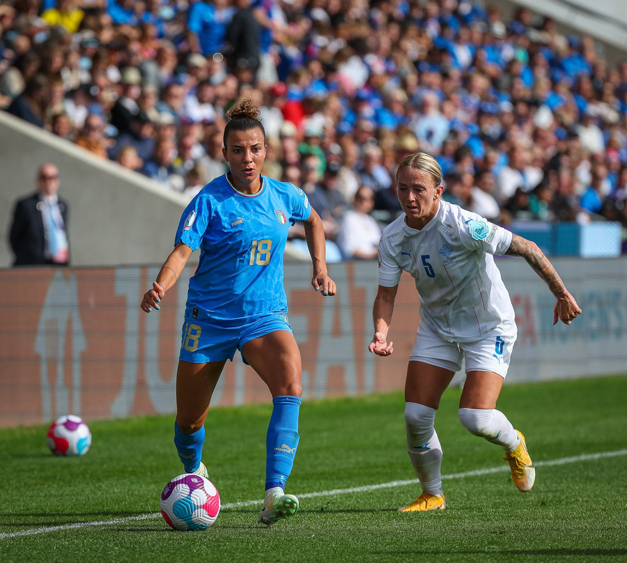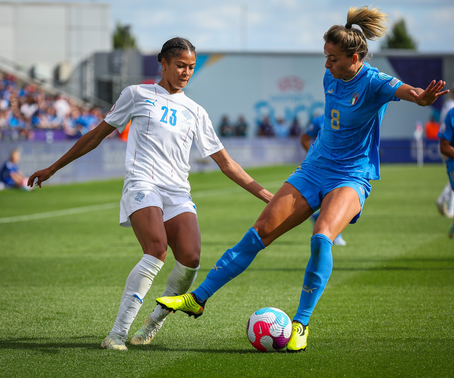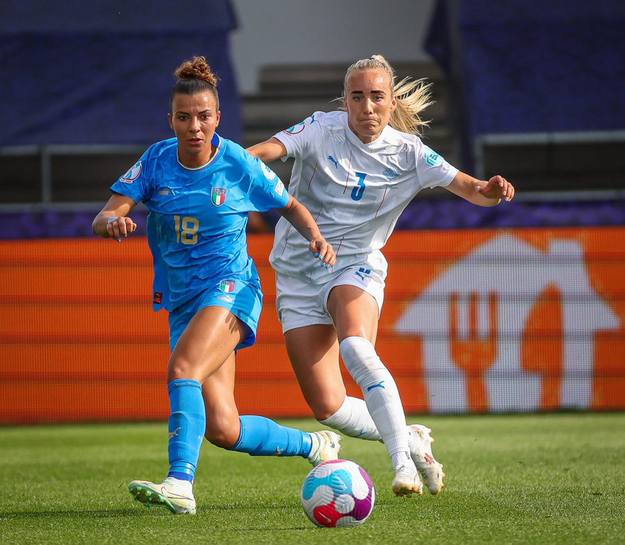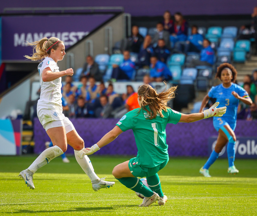 Ítalía steinlá gegn Frakklandi í sínum fyrsta leik í mótinu. Liðið var 5-0 undir gegn Frökkum í hálfleik. Það var svo varamaðurinn Martina Piemonte sem skoraði sárabótamark fyrir Ítalíu á 76. mínútu, minnkaði muninn í 5-1 og þar við sat.