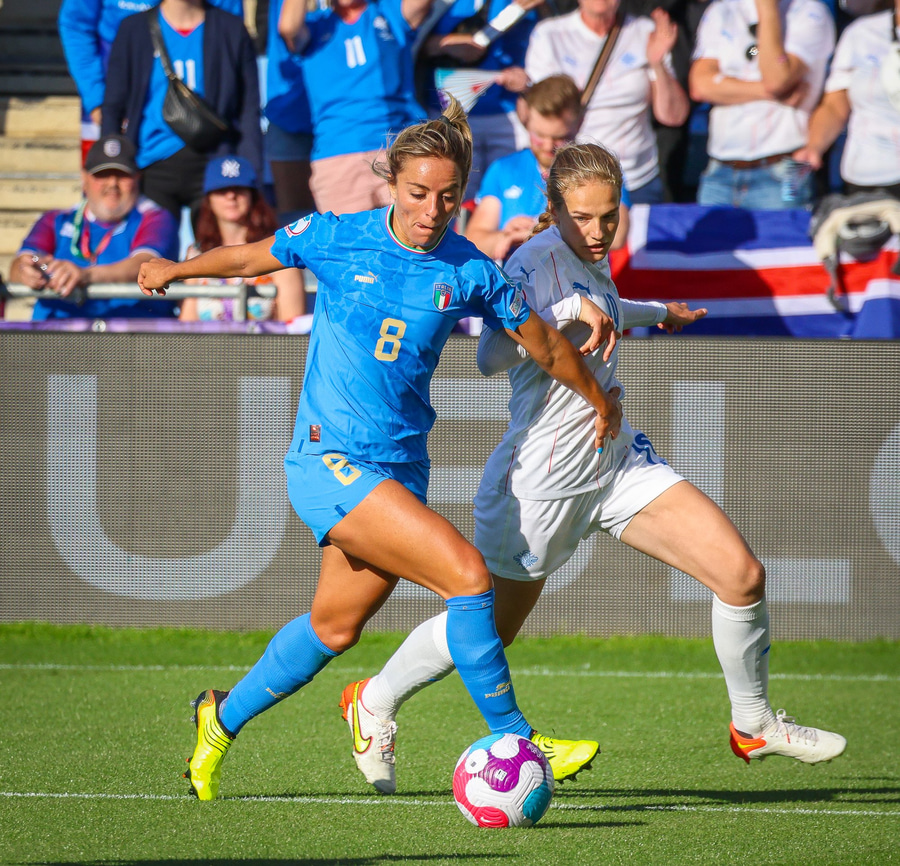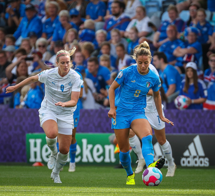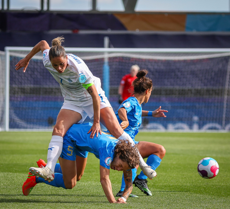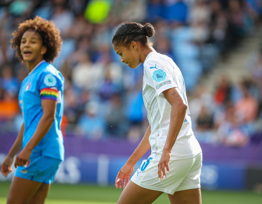 Ítalía steinlá gegn Frakklandi í sínum fyrsta leik í mótinu. Liðið var 5-0 undir gegn Frökkum í hálfleik. Það var svo varamaðurinn Martina Piemonte sem skoraði sárabótamark fyrir Ítalíu á 76. mínútu, minnkaði muninn í 5-1 og þar við sat.