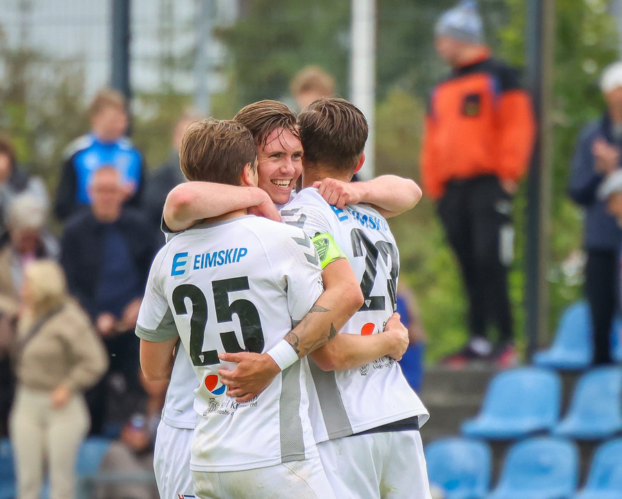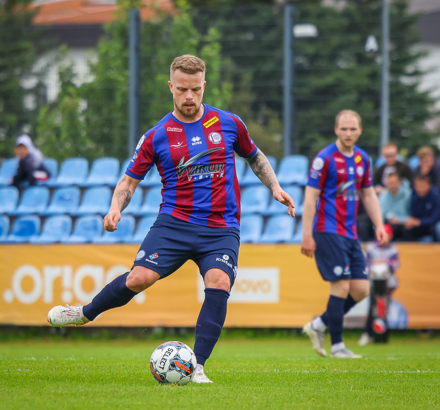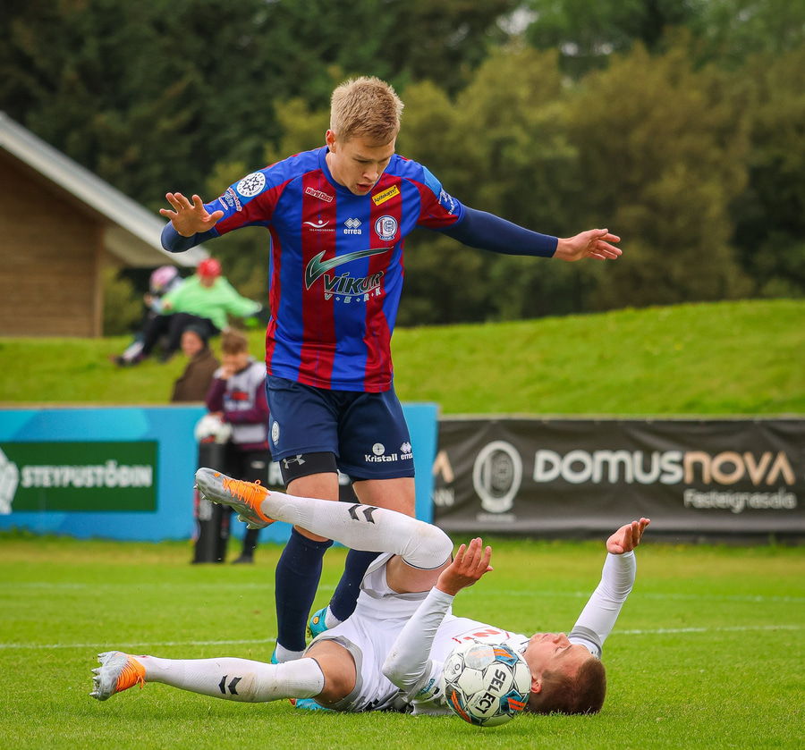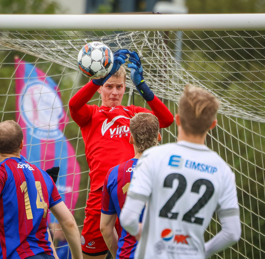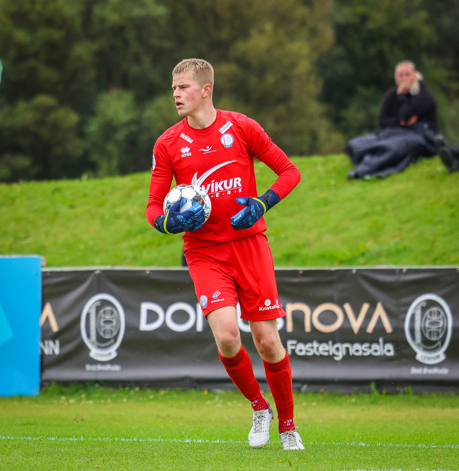 Guðjón Ernir með hornspyrnu inn á markteig þar sem að Viktor missir boltann í teignum og skapast hætta en hann er snöggur niður að handsama boltann!