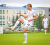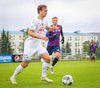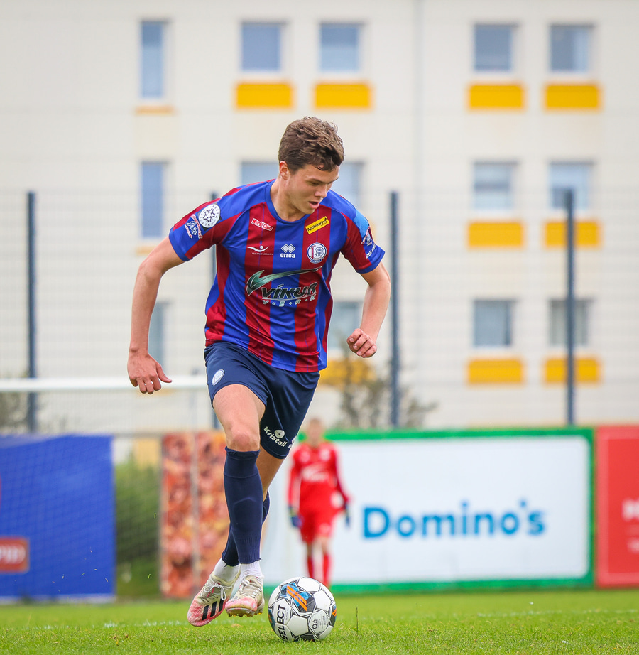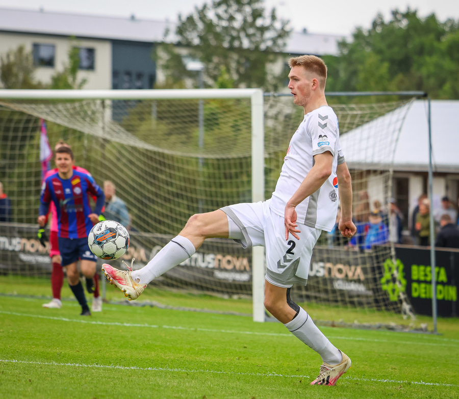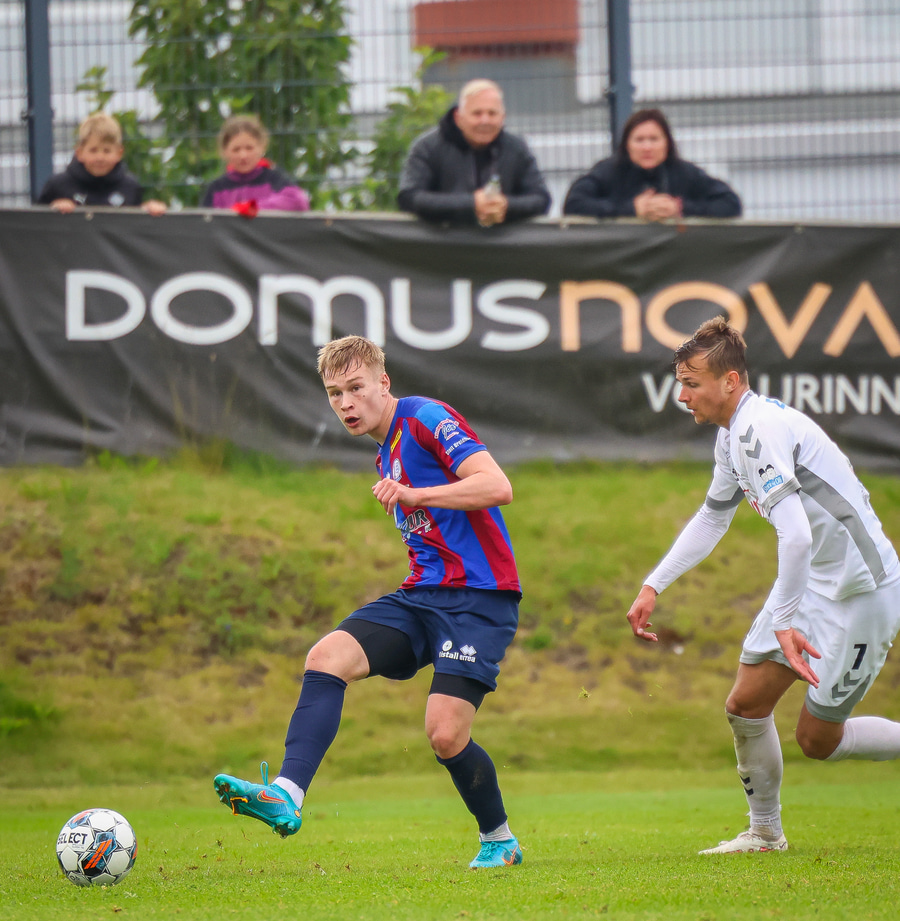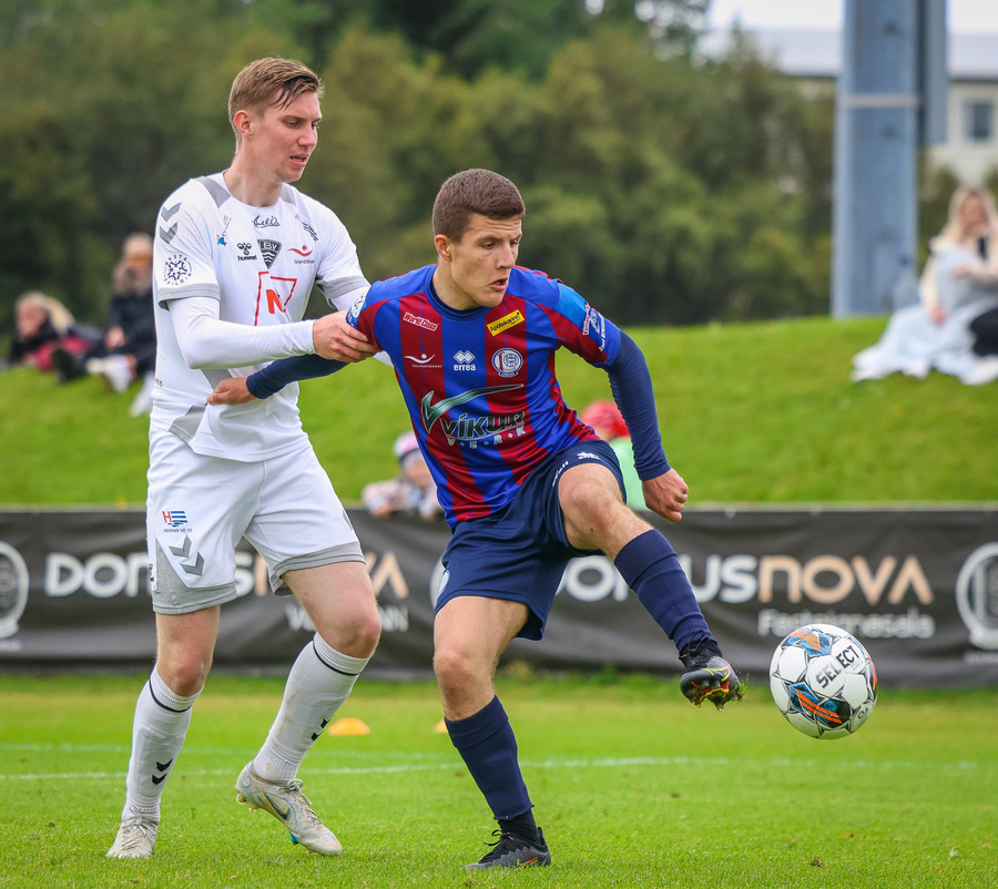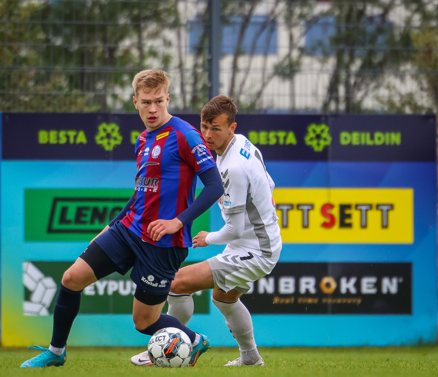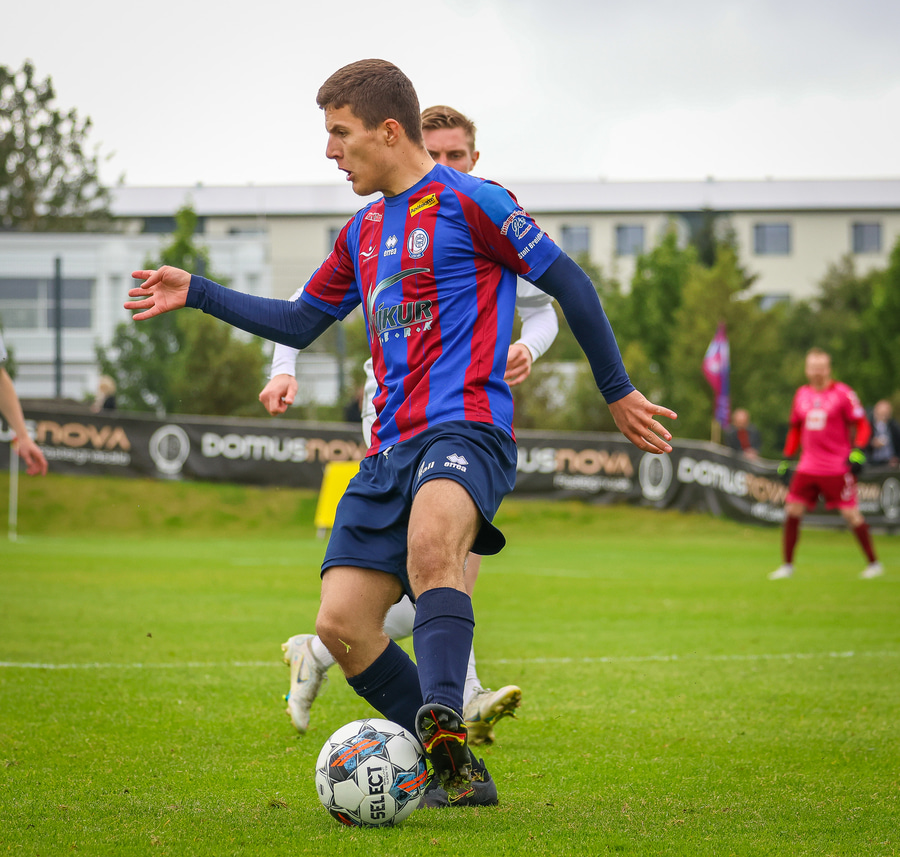 Arnar Breki með fyrirgjöf inn á teig sem Atli Hrafn skallar yfir markið