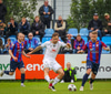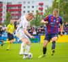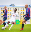 E. Berger með aukaspyrnu inn á teig sem eru skölluð út fyrir teiginn á Birgi sem reynir utanfótar snuddu í átt að marki en skotið er vel yfir markið.