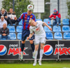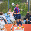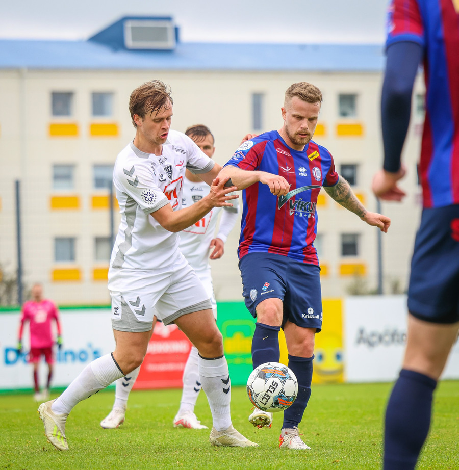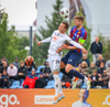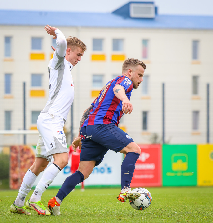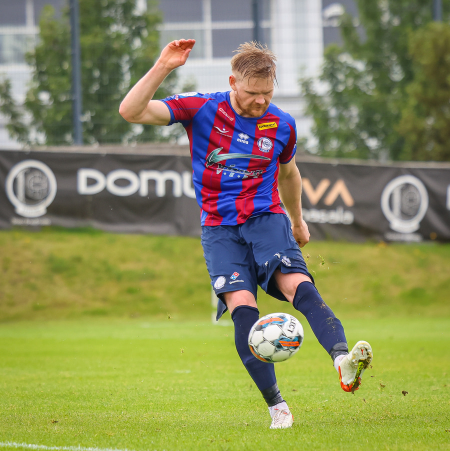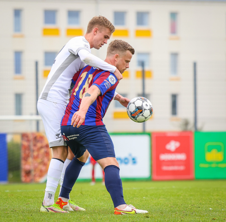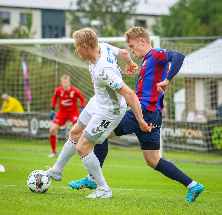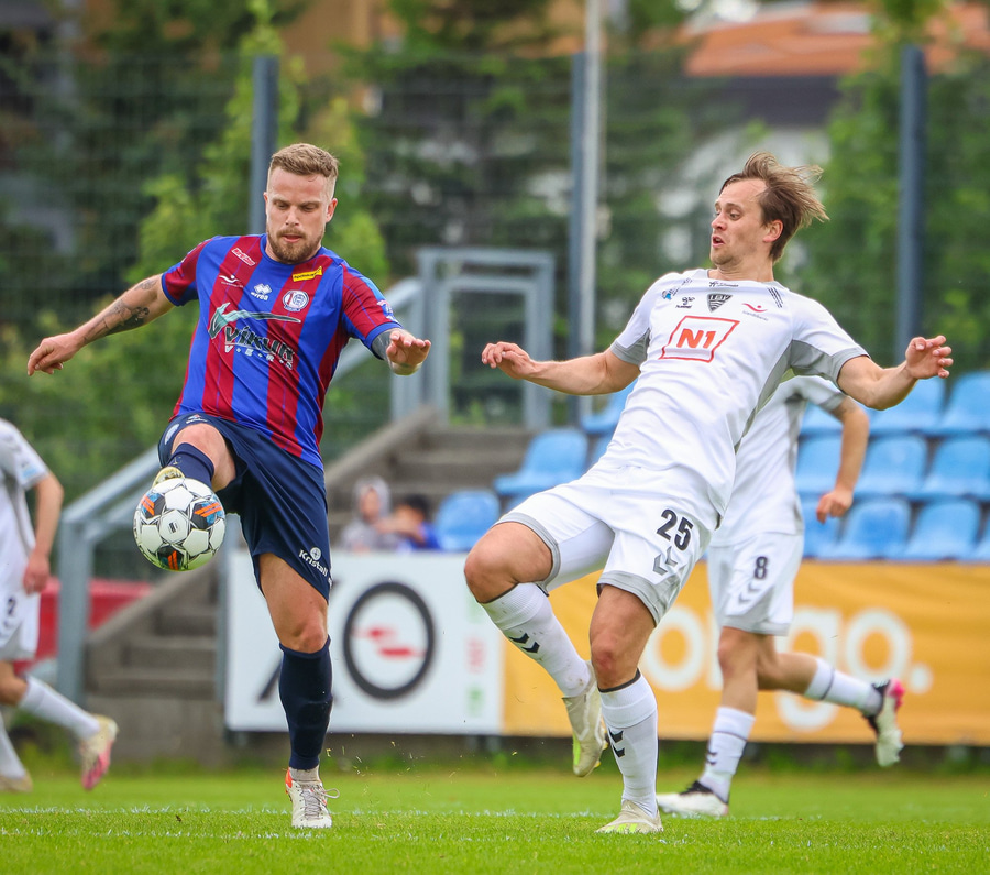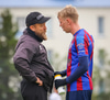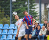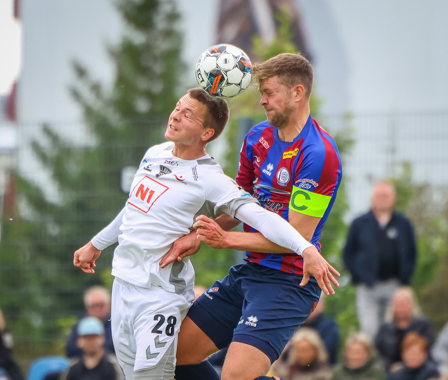 Kannski aðeins of há sending fyrir Atla sem þurfti svolítið að teygja sig í boltann..