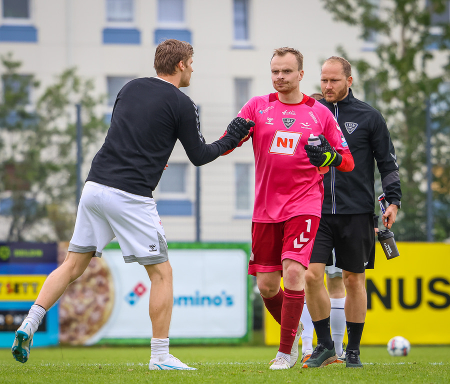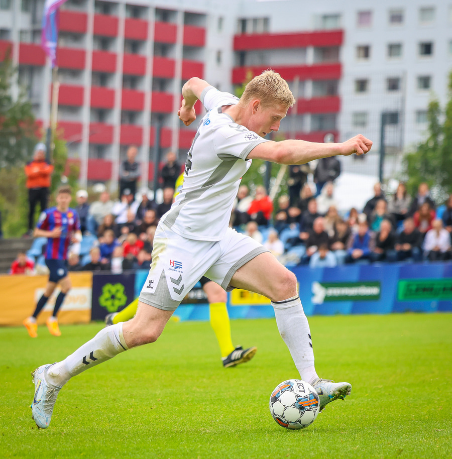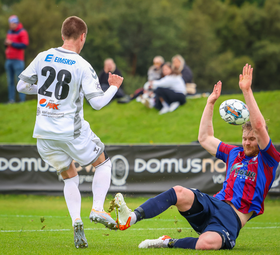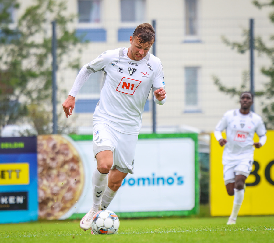 Ég var nýbyrjaður að skrifa um algjört dauðafæri sem Arnar Breki fékk en þá voru Eyjamenn bara allt í einu komnir í sókn! Arnar Breki finnur Guðjón Erni sem kemur í utanáhlaupið og á geggjaða sendingu fyrir markið og þar er HJSÞ mættur á nærsvæðið og tæklar boltann í markið!!