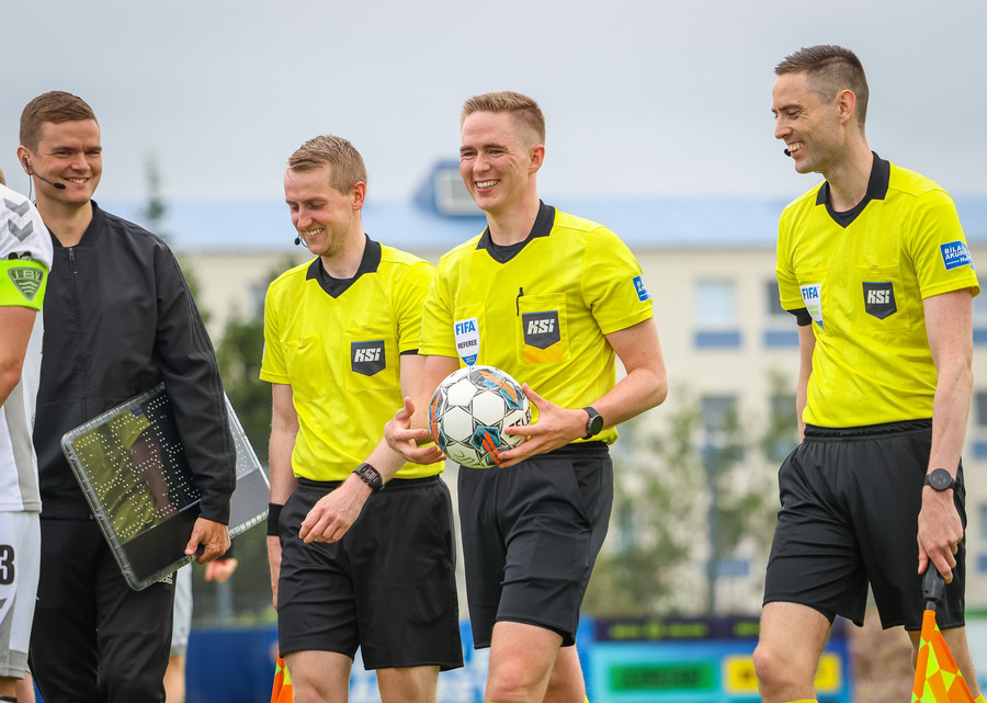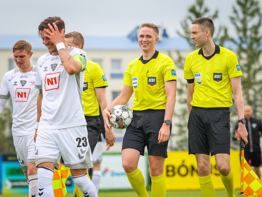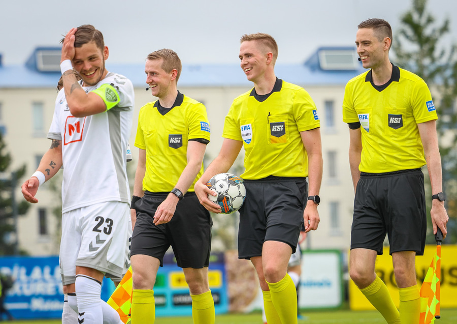 Helgi Mikael er dómari leiksins hér í Breiðholtinu í þessum fallbaráttuslag. Kæmi mér ekki á óvart ef það verða eitthverjir umdeildir dómar og jafnvel að rautt spjald fær að líta dagsins ljós