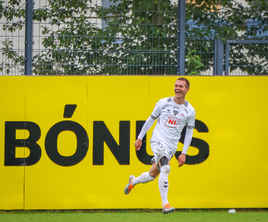 Gyrðir Hrafn klaufi og tapar boltanum á miðjunni og Atli Hrafn fær boltann og hleypur upp allann vallarhelming heimamanna, Atli kemst upp að teignum og leggur boltann út í teiginn og þar kemur Alex Freyr Hilmarsson á ferðinni og skorar frábært mark með skoti í nærhornið!