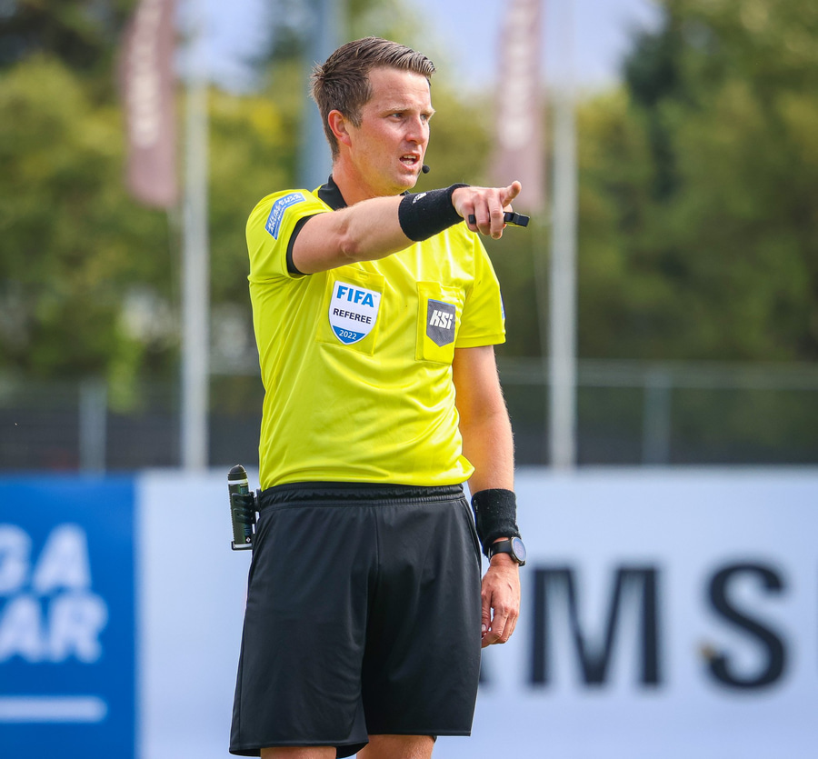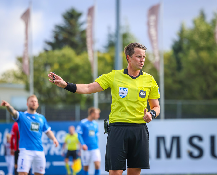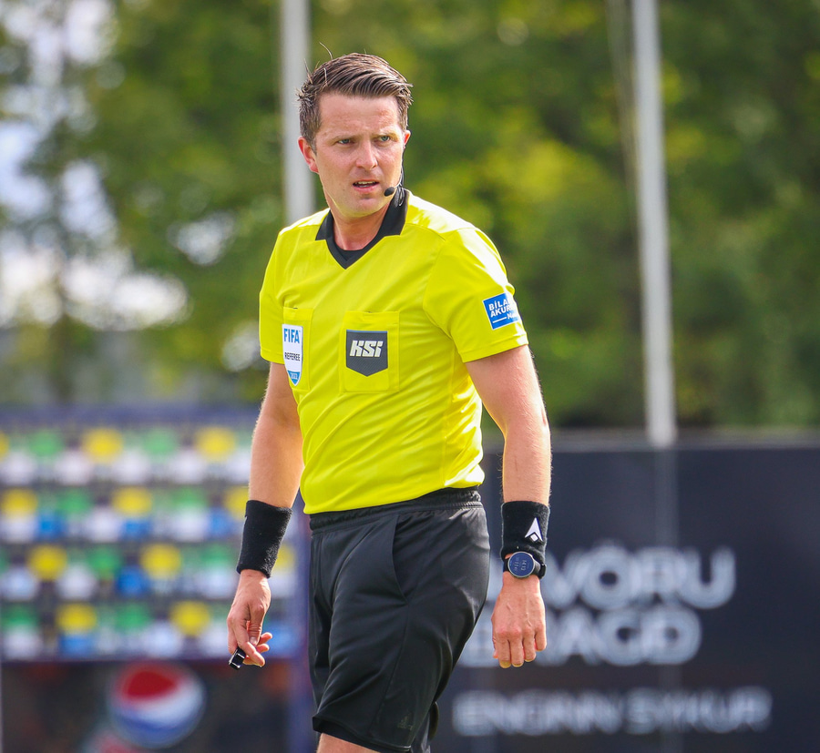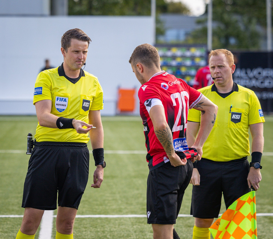 Dómari í dag er Vilhjálmur Alvar Þórarinsson, sem er mér finnst almennt mjög góður dómari. Gylfi Már Sigurðsson og Oddur Helgi Guðmundsson eru aðstoðardómarar og Helgi Mikael Jónasson fjórði dómari.