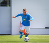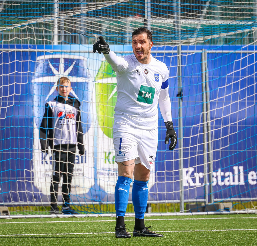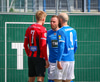 Jæja, þá er þetta byrjað. Óli Kalli leikur listir sínar með boltann áður en hann tekur upphafssparkið.