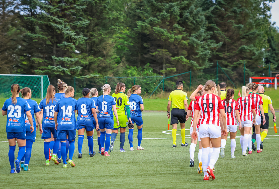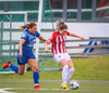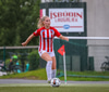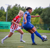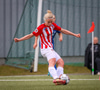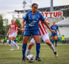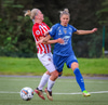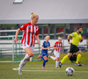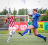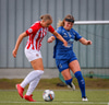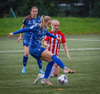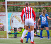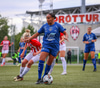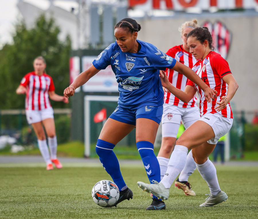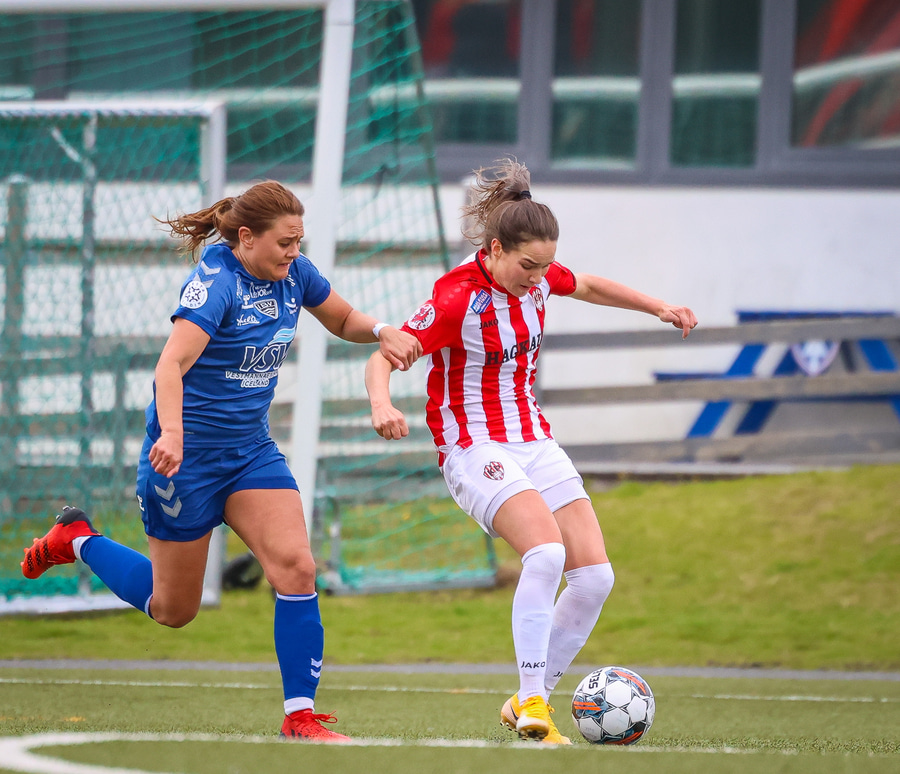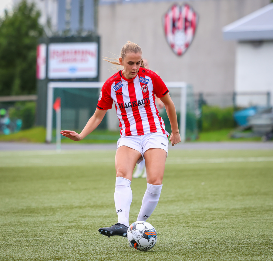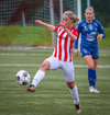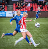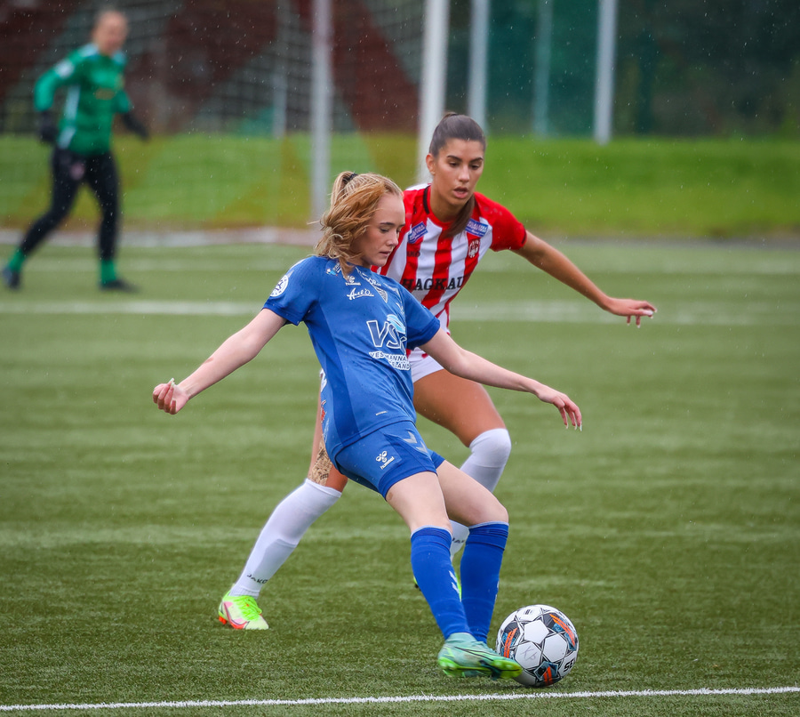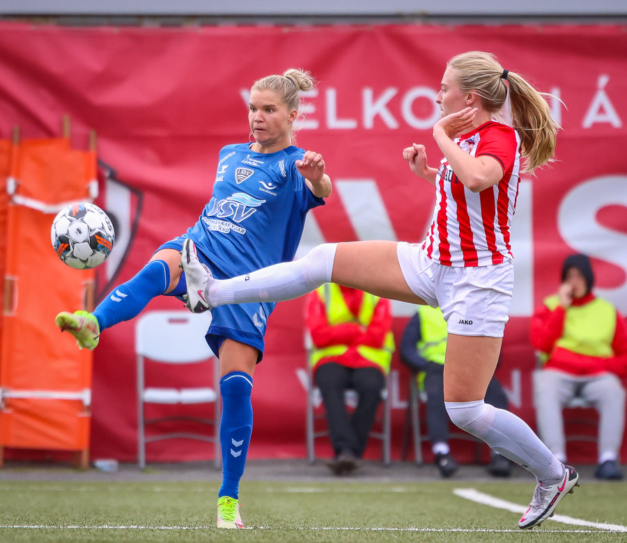 Freyja Karín strax komin í boltann. Hún kemur á mikilli ferð og á svo sendingu út í teiginn á Murphy sem á skot en Auður ver.