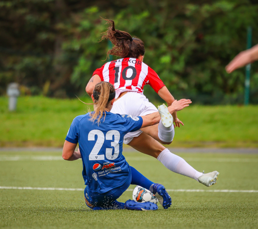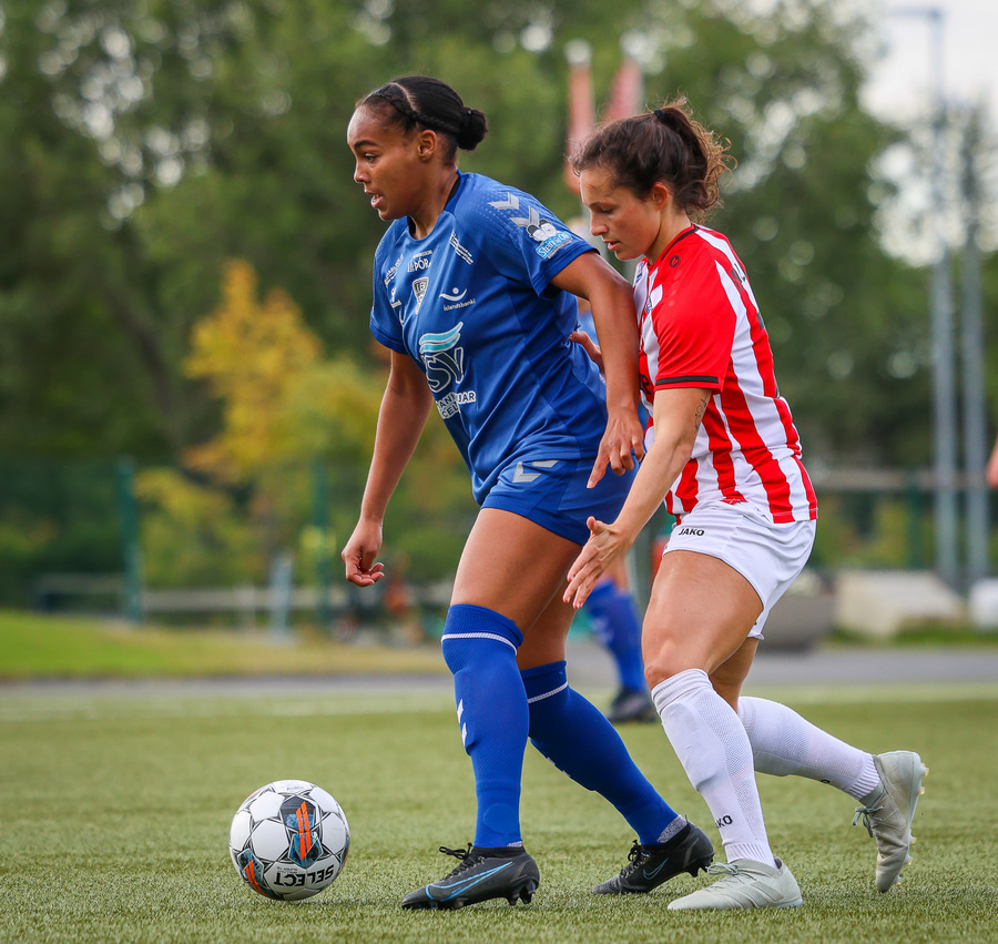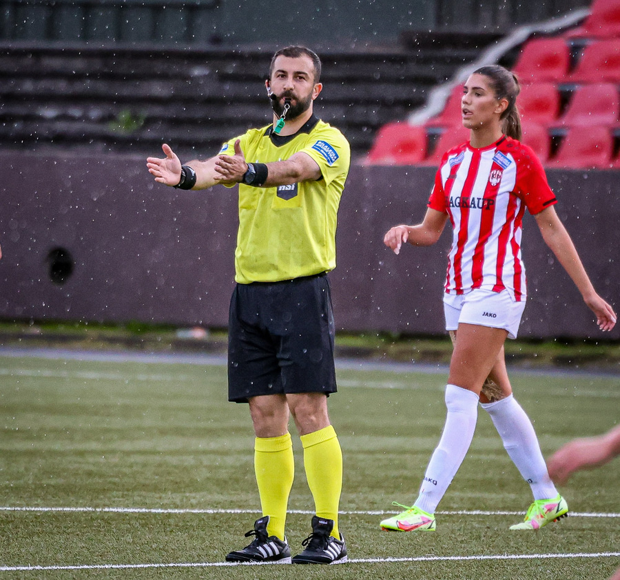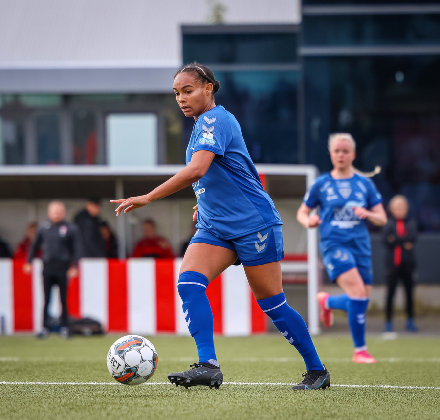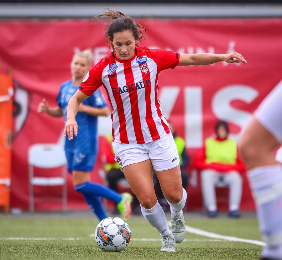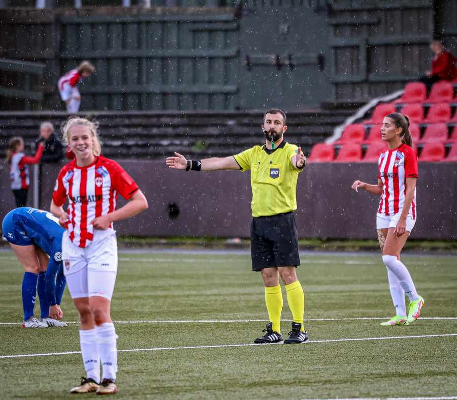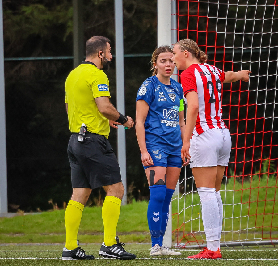 Ameera reynir skot að marki en það fer beint í varnarmann. Kallar svo eftir hendi en boltinn fer fyrst í lærið og því ekki hægt að dæma neitt á þetta held ég.