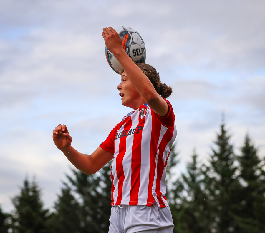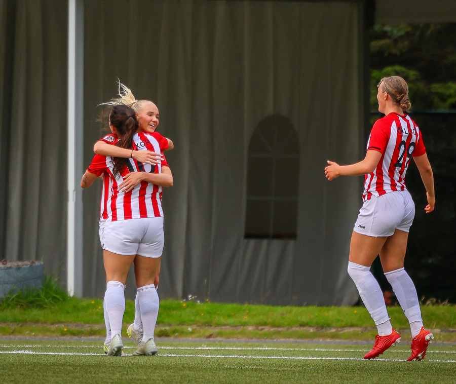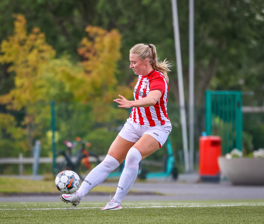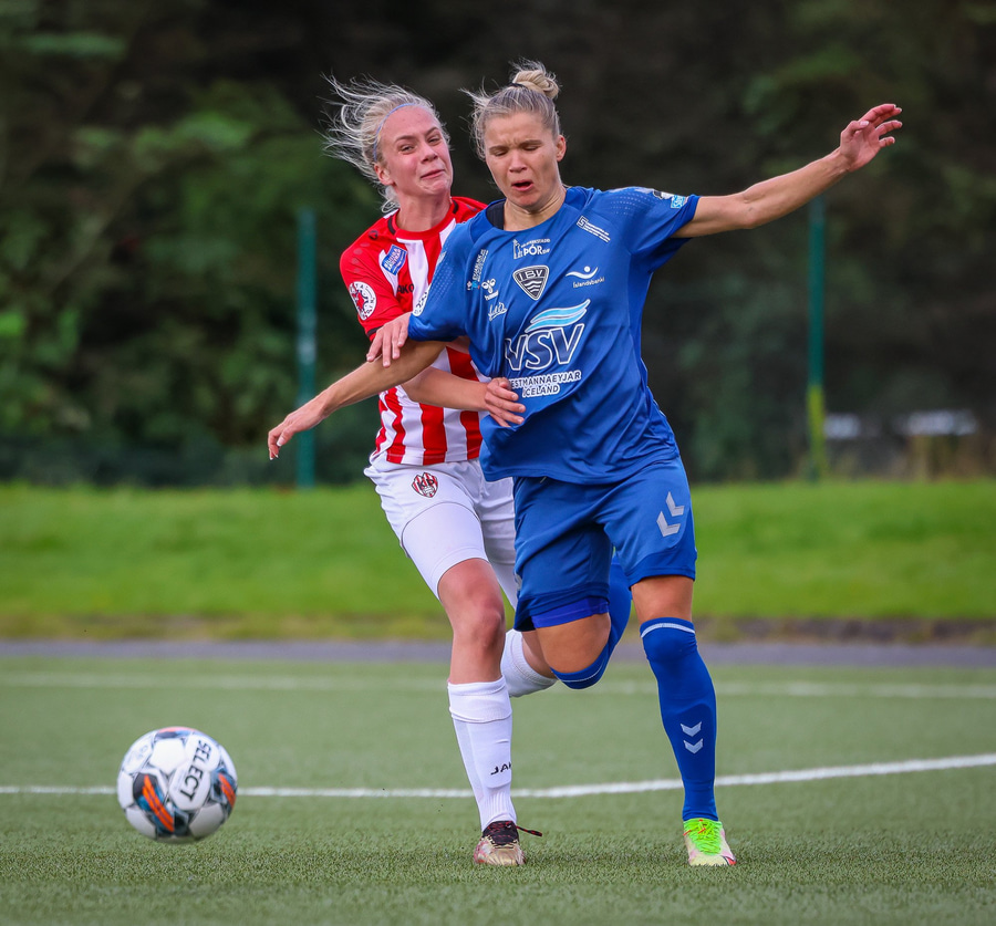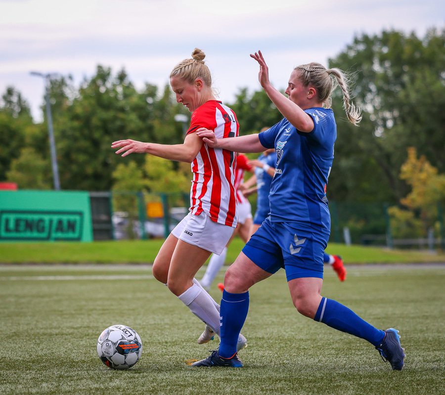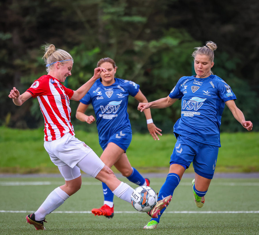 Ólöf Sigríður enn eina ferðina. ÞÆR RÁÐA EKKERT VIÐ HANA! Hún fær boltann, hristir varnarmann af sér og á skot sem fer í stöngina. Boltinn fer svo í bakið á Auði og kemur Freyja á ferðinni og kemur boltanum yfir línuna. Smá heppnisstimpill yfir þessu.