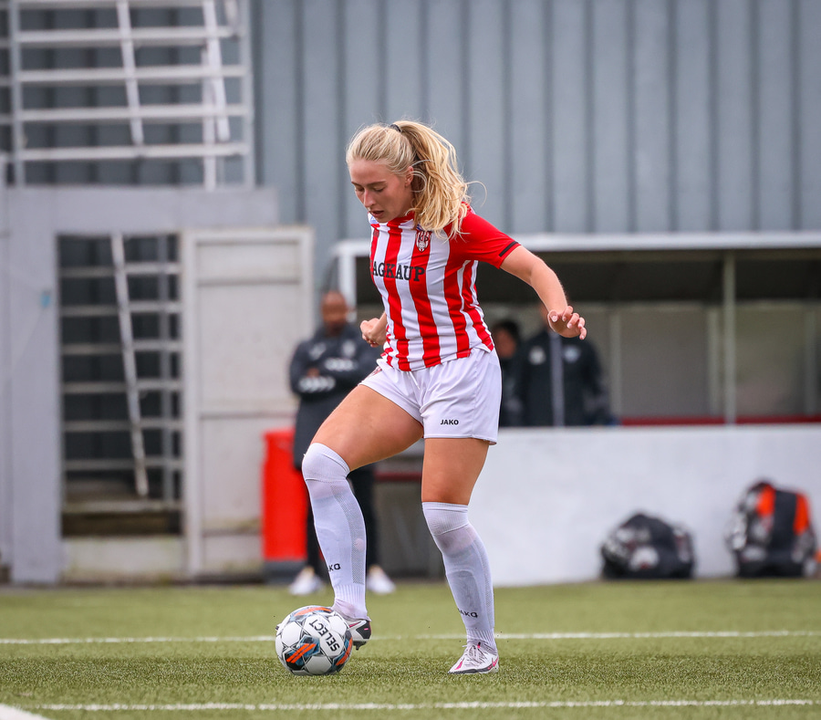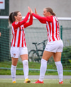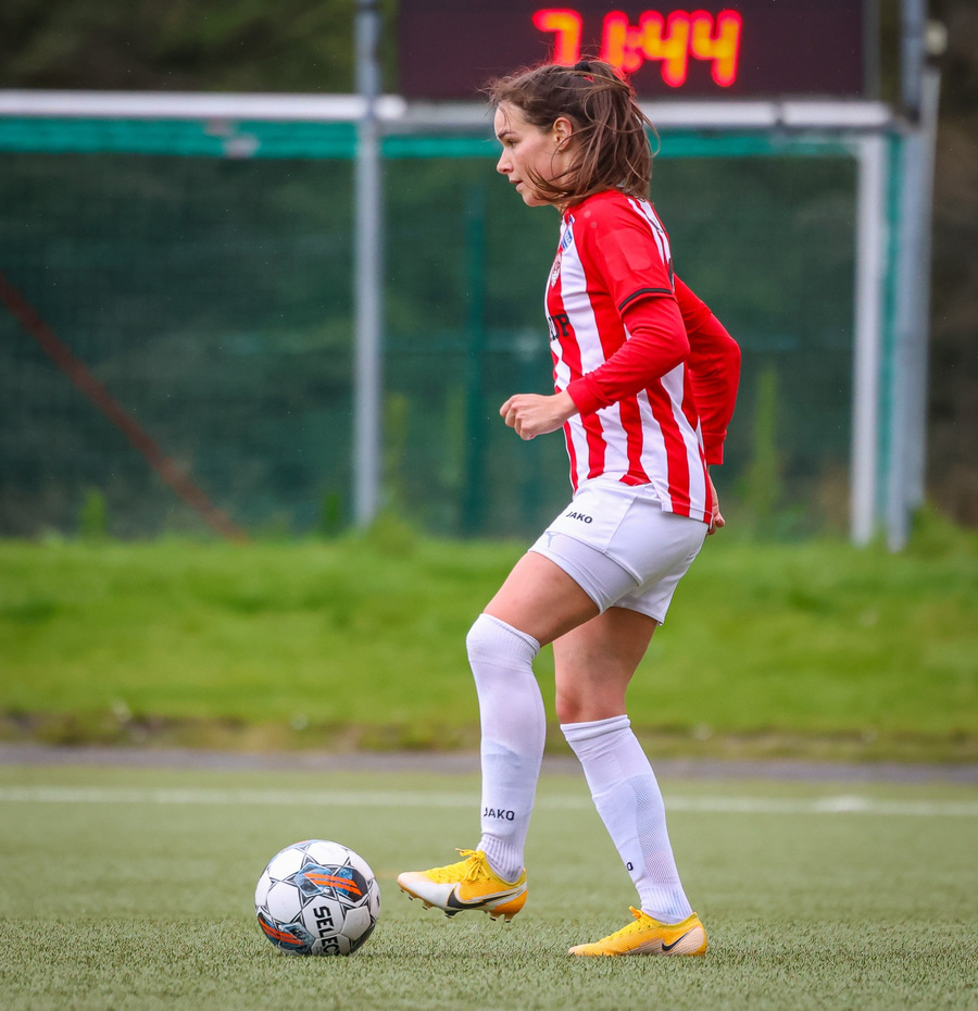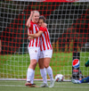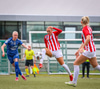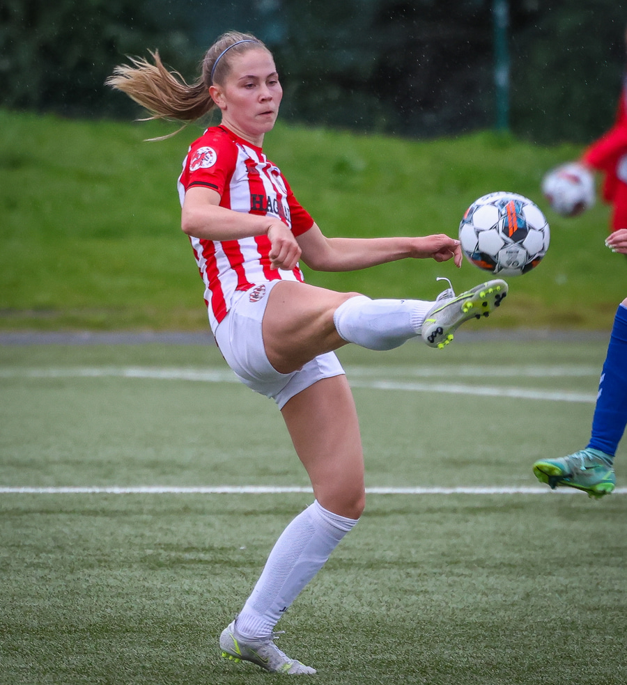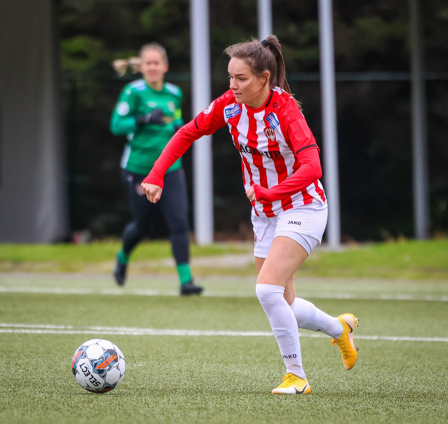 Haley ber boltann upp úr vörninni og finnur Madison sem á fasta sendingu í gegn á Söndru sem skorar og jafnar metin.