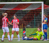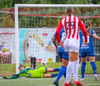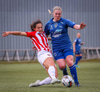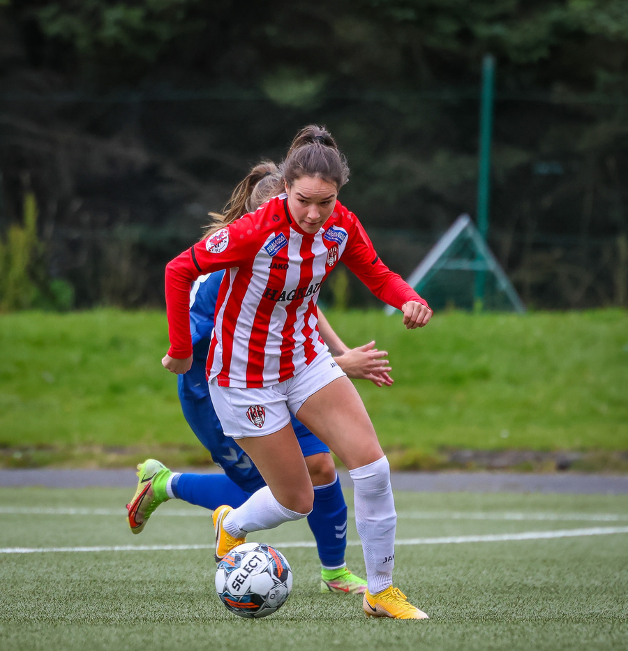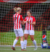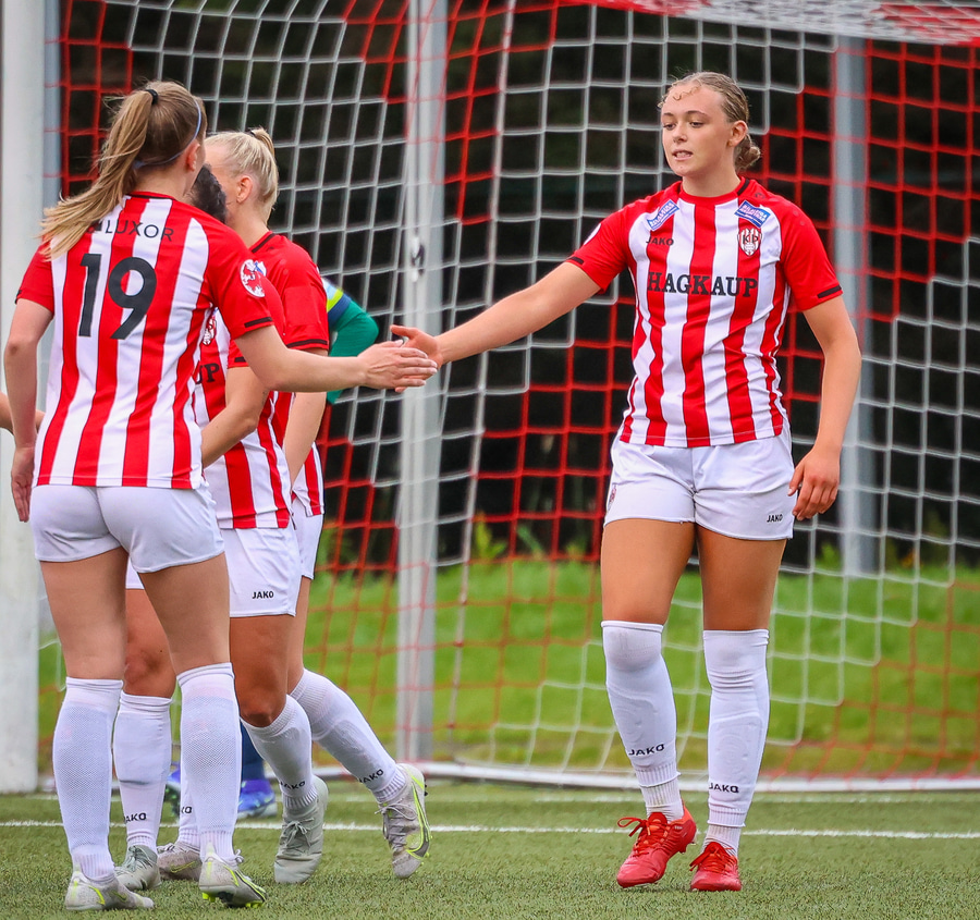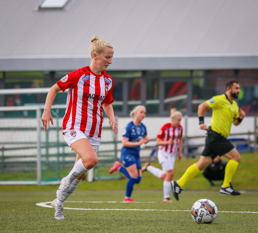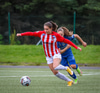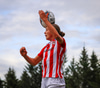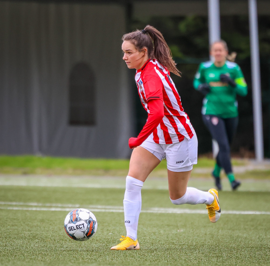 Haley ber boltann upp úr vörninni og finnur Madison sem á fasta sendingu í gegn á Söndru sem skorar og jafnar metin.