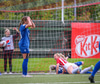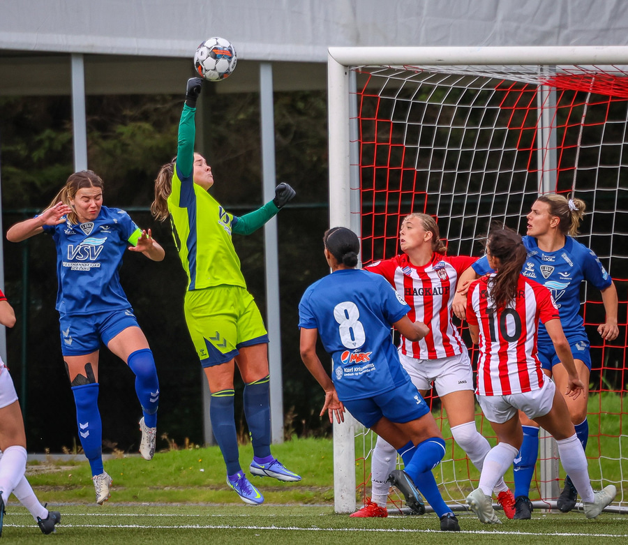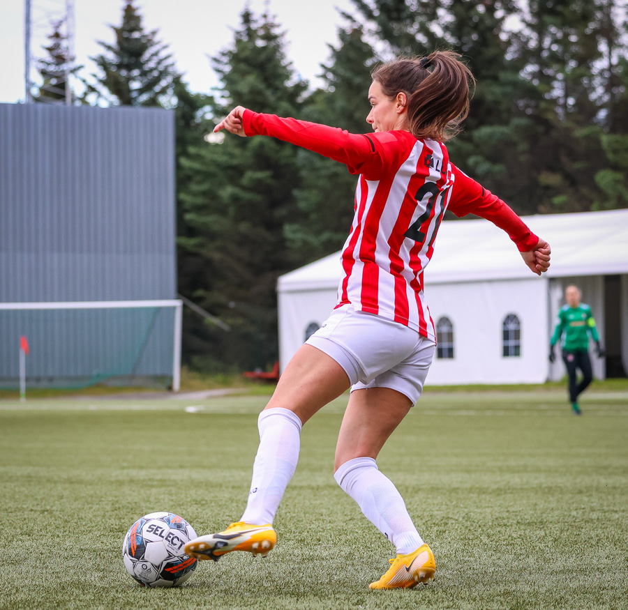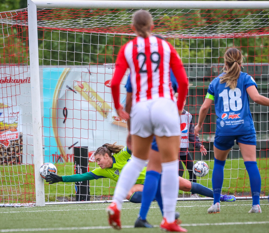 Jelena byrjar á því að eiga skalla að marki sem Auður ver vel. Auður þarf svo aftur að verja.