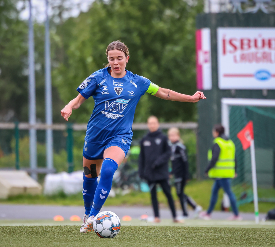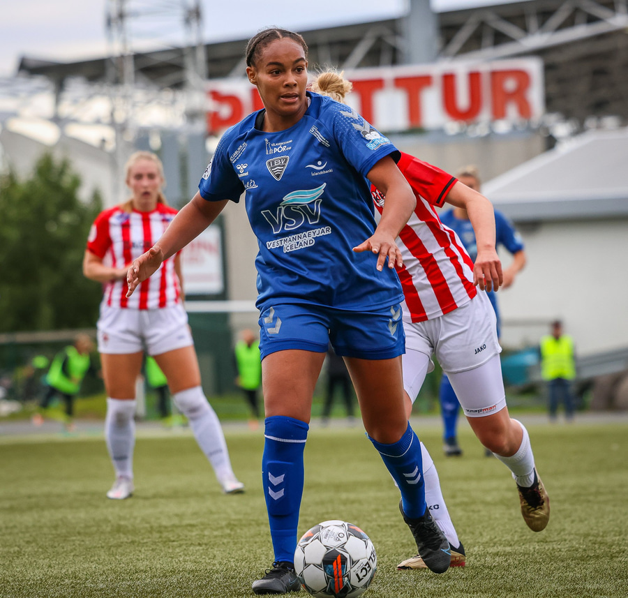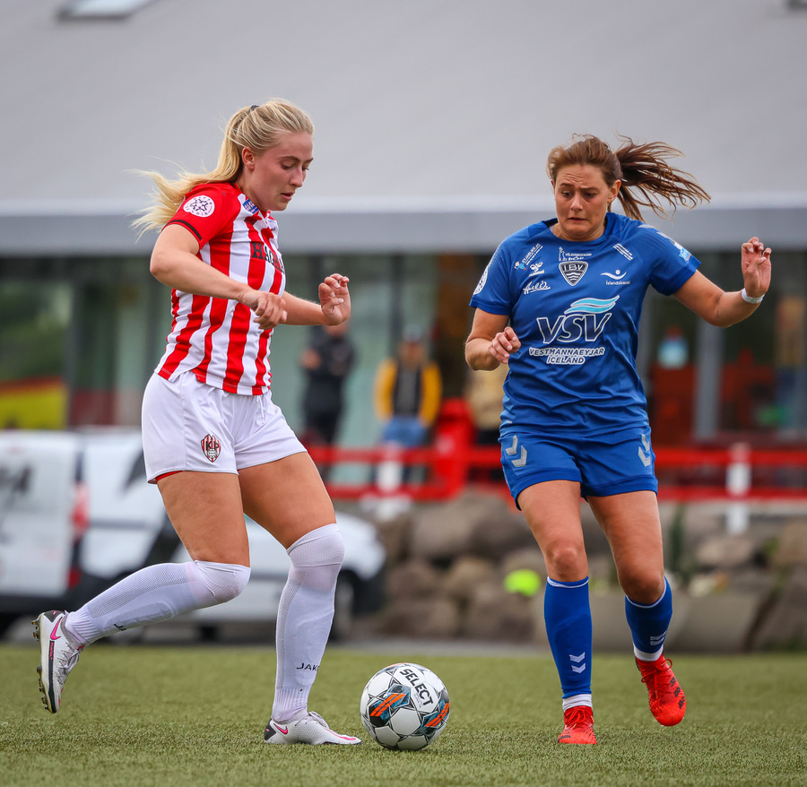 Murphy keyrir auðveldlega fram hjá Júlíönu og reynir fyrirgjöf, en Eyjakonur ná að koma sér fyrir og fá svo aukaspyrnu.