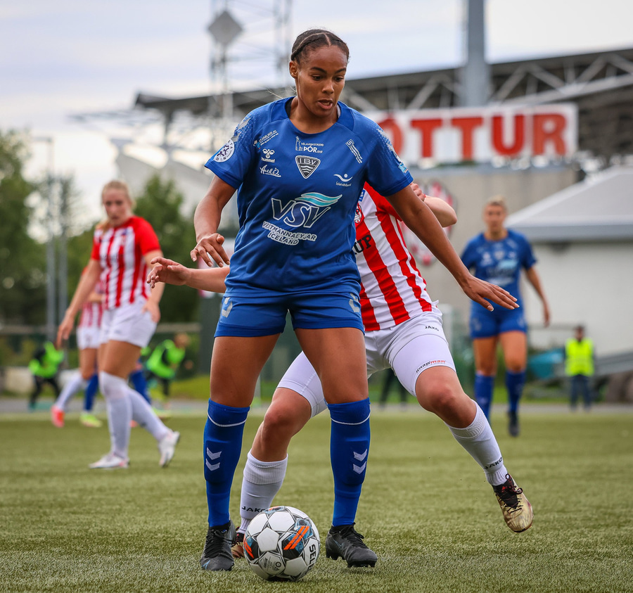 Varnarmenn ÍBV munu fá martraðir í kvöld um Ollu. Sú er búin að vera í stuði í kvöld. Fer hérna illa með Söndru og svo skot en það er ekki nægilega öflugt.