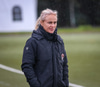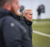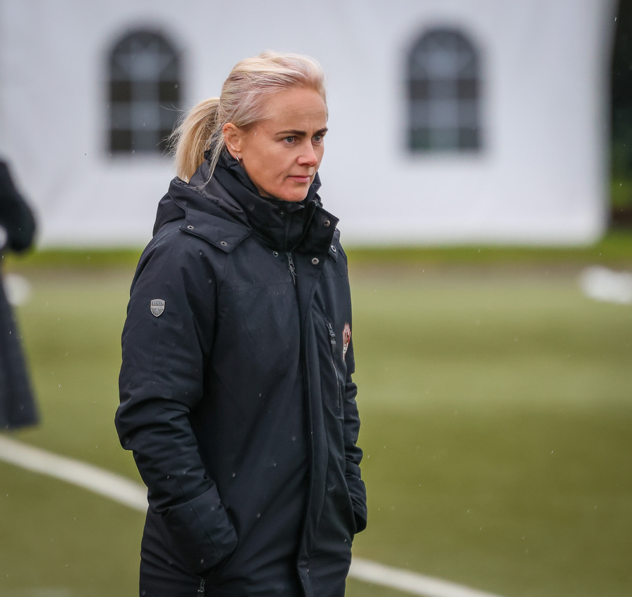 Olga að fá boltann í hættulegri stöðu en hún nær ekki að taka hann með sér. Ekki dagurinn hennar.