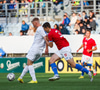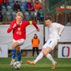 Fyrsta marktilraunin í leiknum. Adam Gabriel með skot en beint á Hákon sem var ekki í neinum vandræðum.