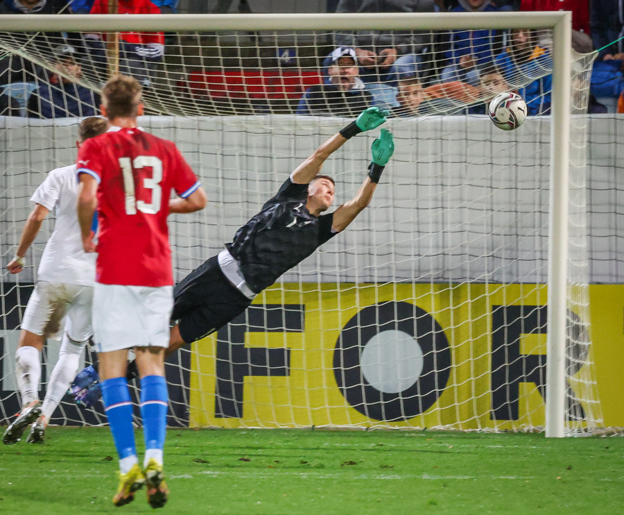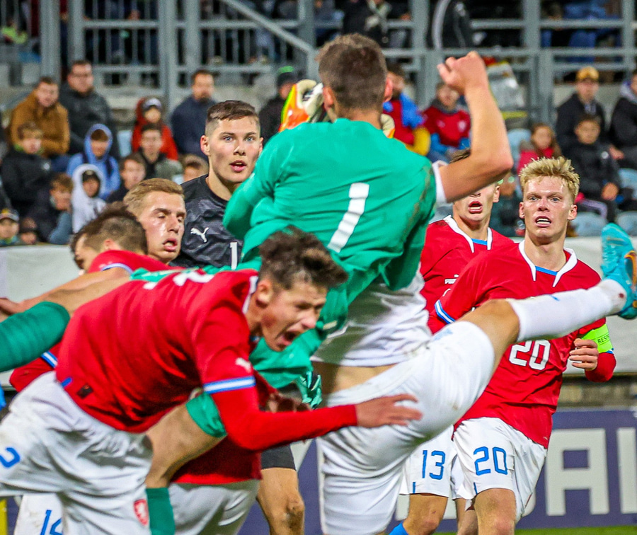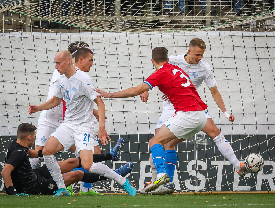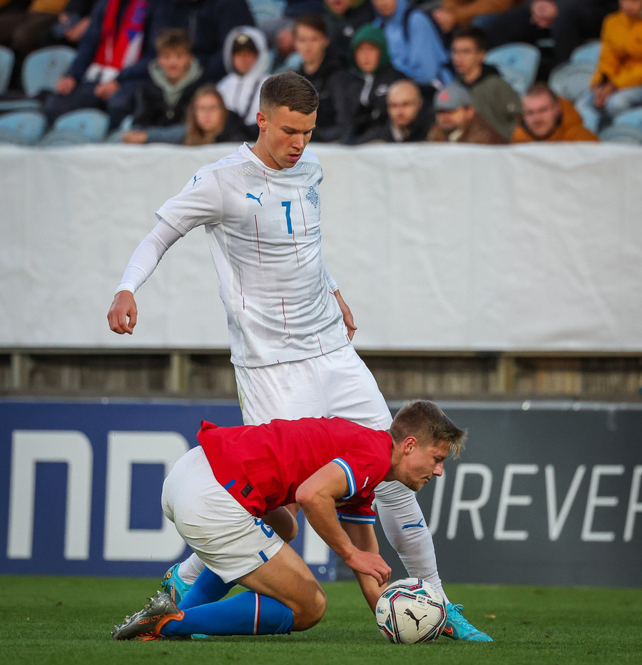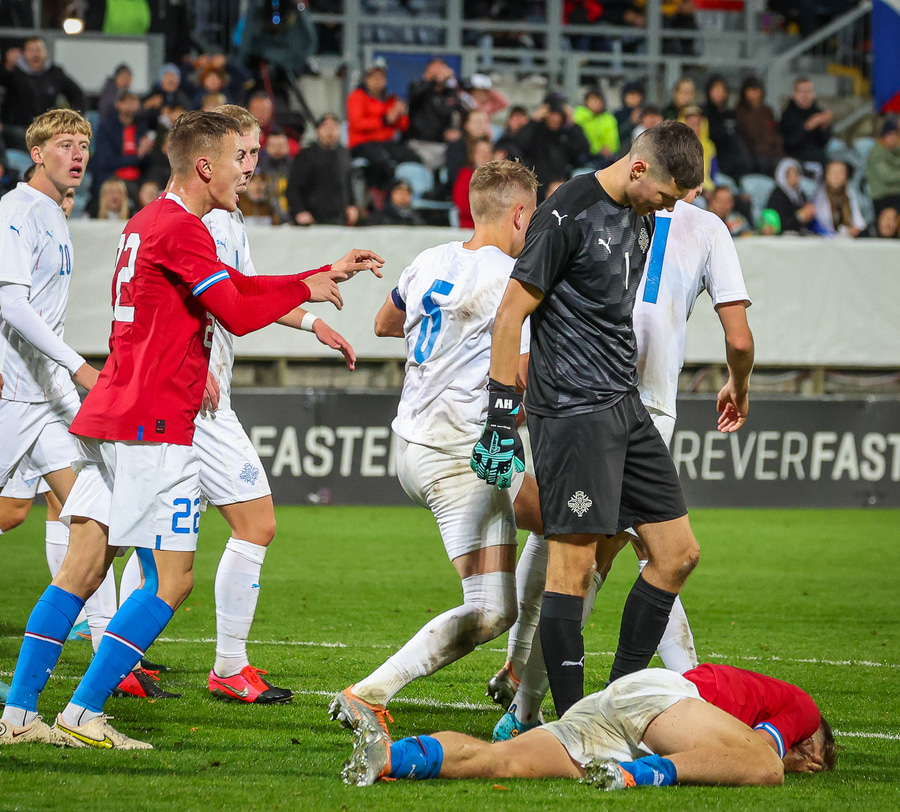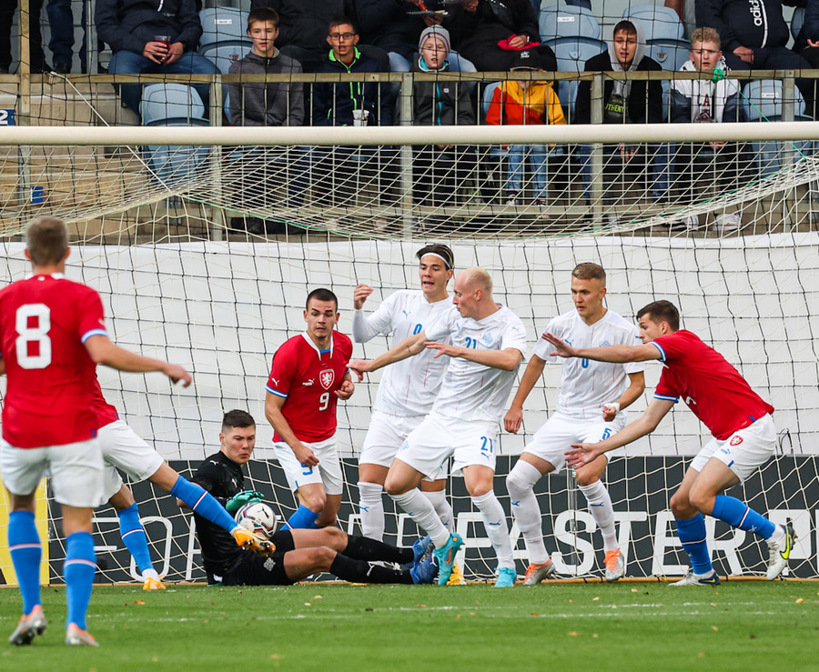 Tékkar með hornspyrnu af æfingasvæðinu. Lukás Cerv með hörkuskot sem Hákon ver. Önnur hornspyrna.