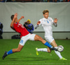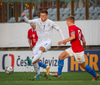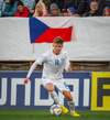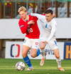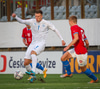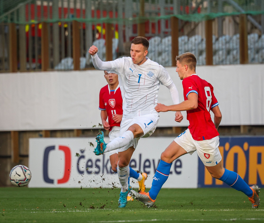 Fínt spil Íslands. Óli Valur með fyrirgjöf en leikmaður Tékklands nær snertingu og kemur í veg fyrir að boltinn fari á Dag Dan.